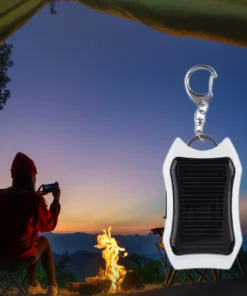 – Keychain Emergency Power Bank with 3 LED Lights, designed for portable charging of cell phones.