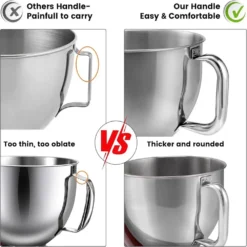 – Stainless Steel Mixer Bowl designed for 4.5-5QT Kitchenaid Stand Mixers, features a handle for easy handling.