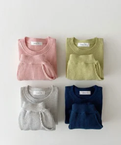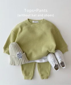 Be the first to review “Waffle Cotton Tracksuit Set – Soft Pullover Top and Pants for Kids”