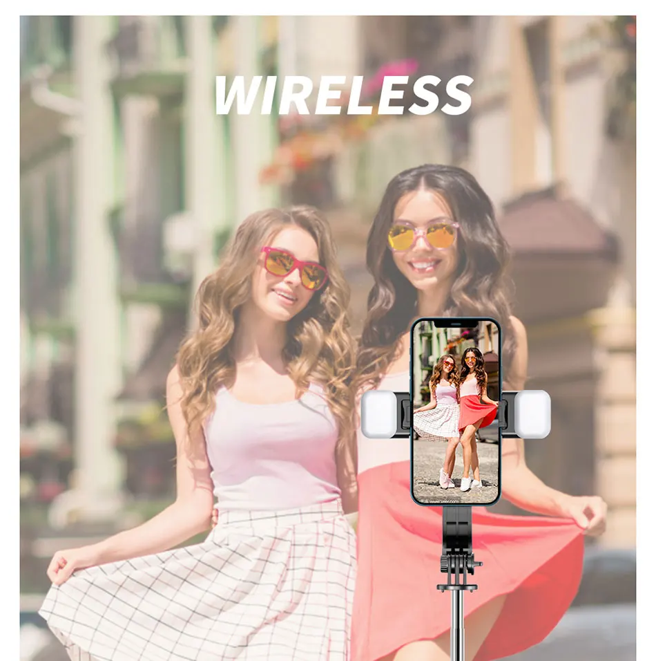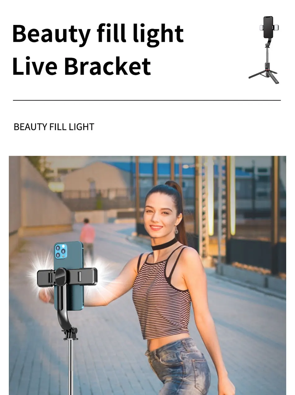 L13D Selfie Stick 1160mm with Wireless Bluetooth Double Fill Light Extended Tripod with Remote Shutter for Android IOS Cellphone