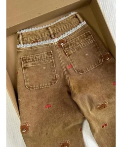 Be the first to review “Wide Leg High Waisted Jeans with Lace Teddy Bear Embroidery for Casual Commuting”