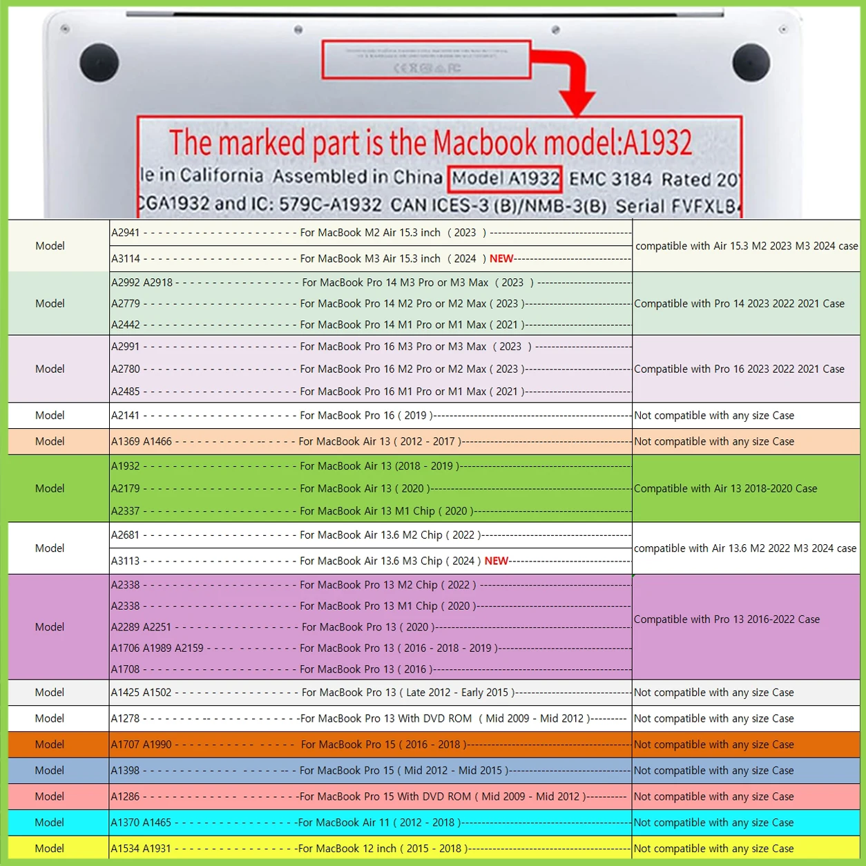 | Model Number | A2141 A2179 A1370 A1465 A1534 A1931 A1286 A1398 A1278 |