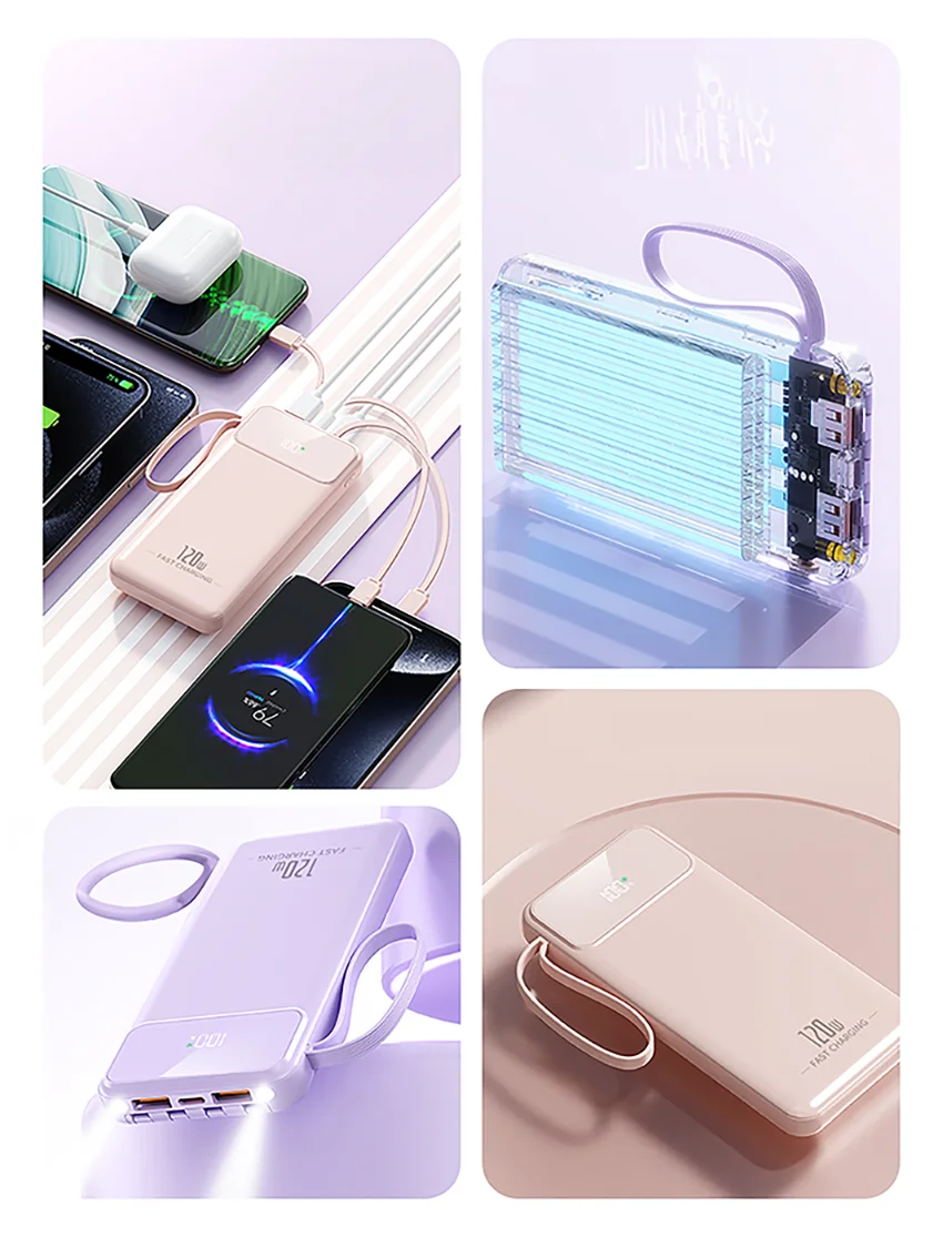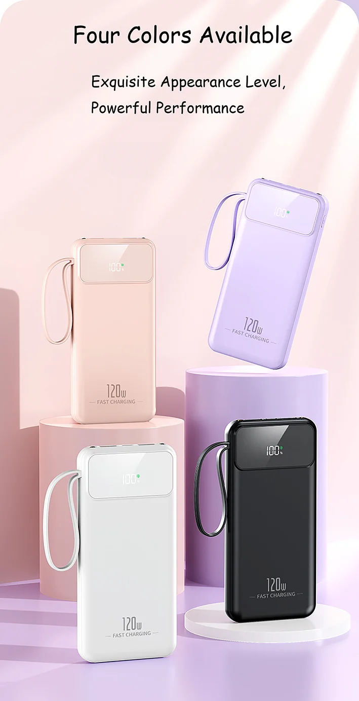 Large Capacity 20000mAh Power Bank with 120W Fast Charging and LED Light for iPhone, Huawei, Samsung