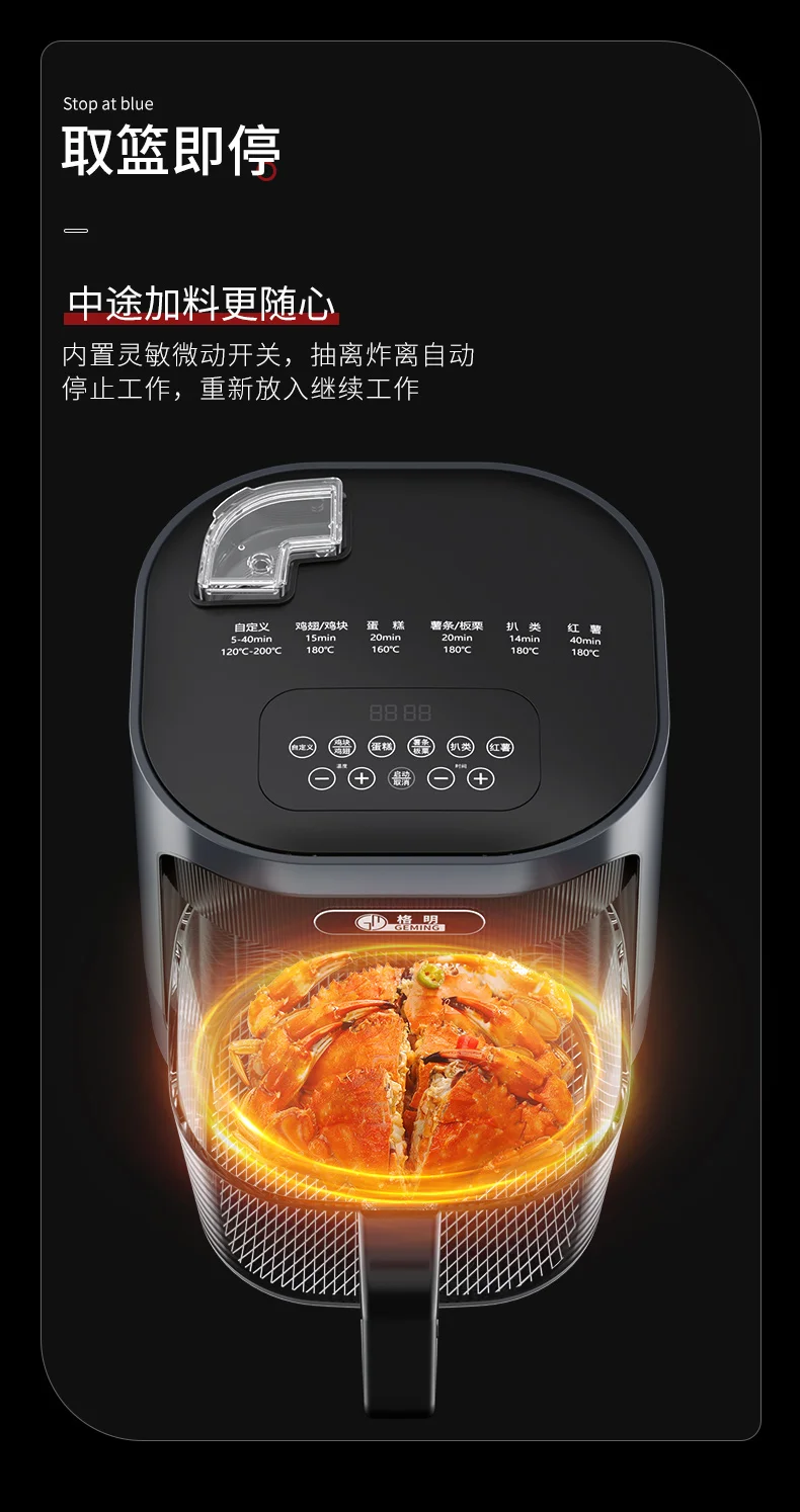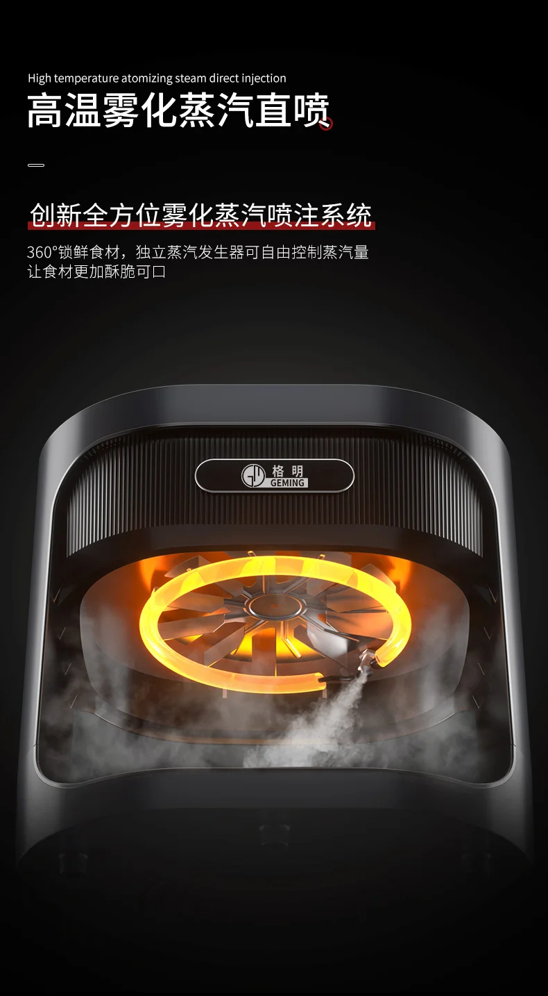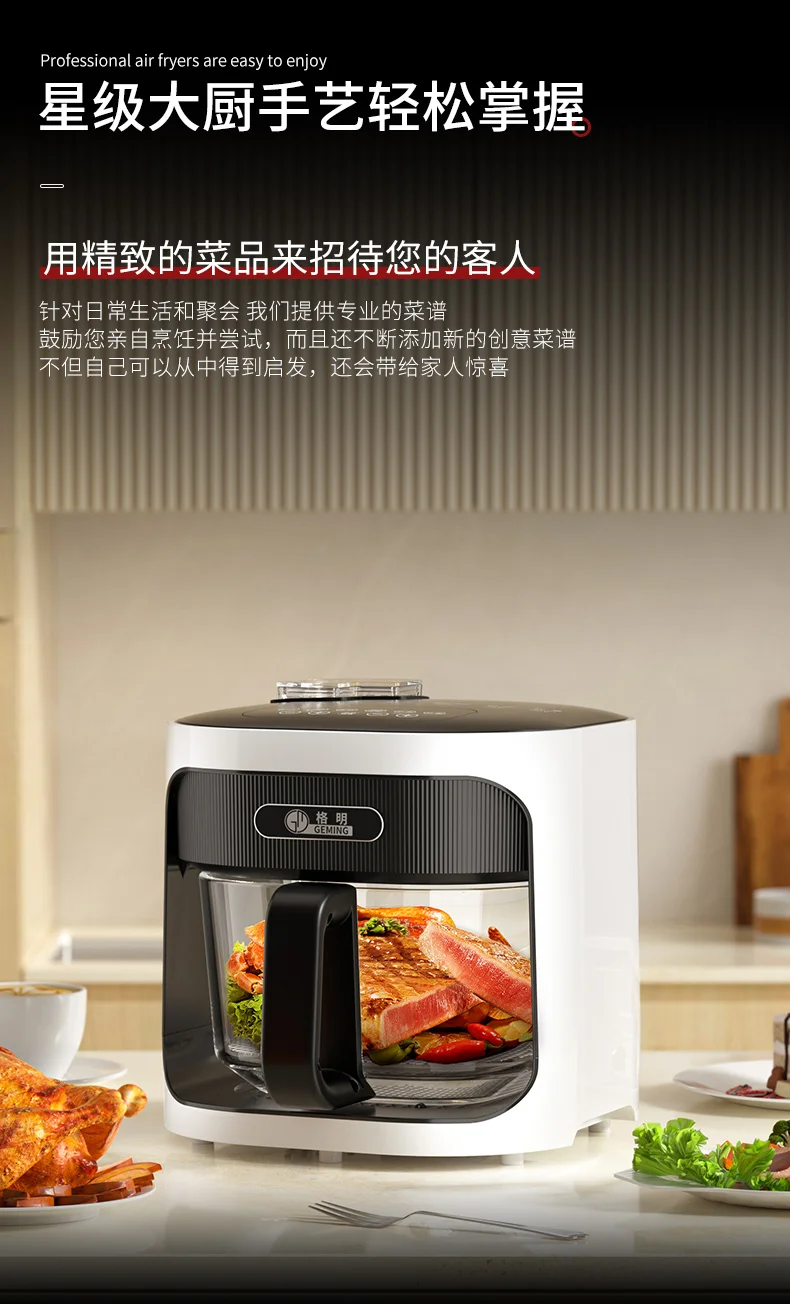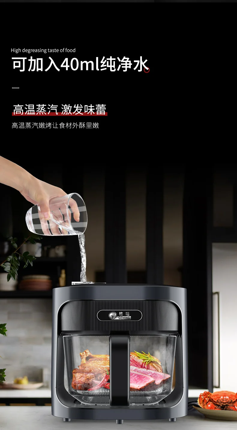 Large-Capacity 6L Steam Air Fryer with Glass Liner and Multi-Functional Features