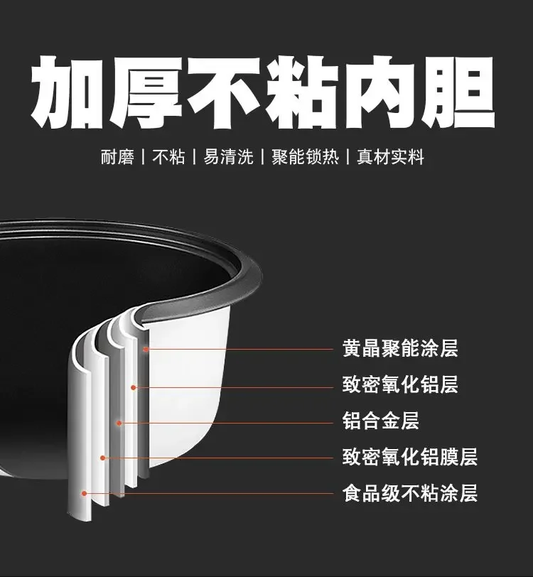 | Function | Non-Stick Coating Inner Pot,cake,Claypot Cooked Food,Rice Cooking,Rice Cooking & Porridge Cooking & Soup Stewing,Cooking & Stewing & Heating,Porridge/Soup,Quick Boiling,Reheating,Fine Cook,Heat Preservation |