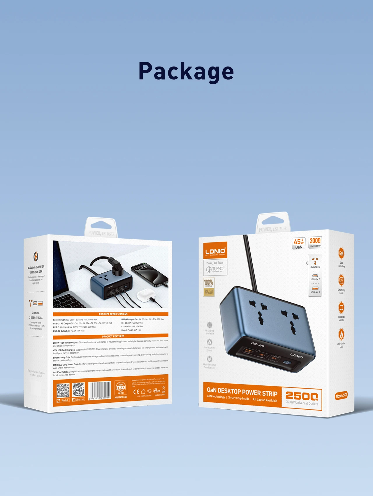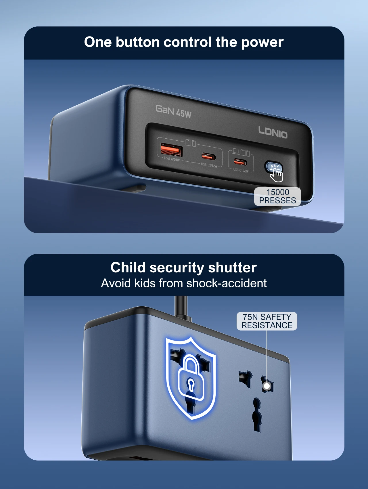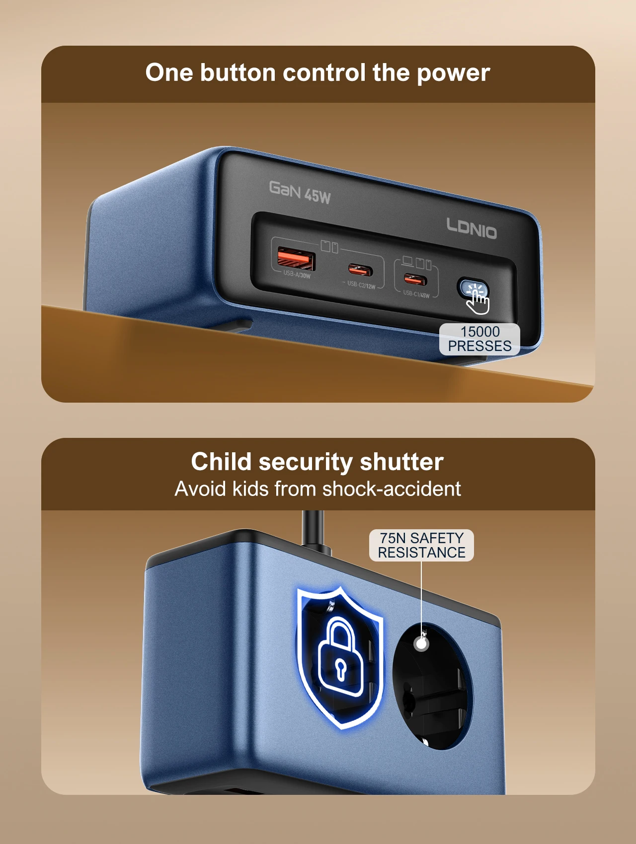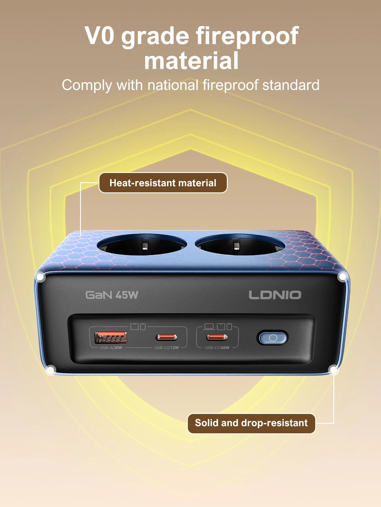 LDNIO Fast Charger Cube Power Strip 2M Electric Extension Power Cord 45W Type C Charging Station Us UK Eu Kr Usb Plug Adapter