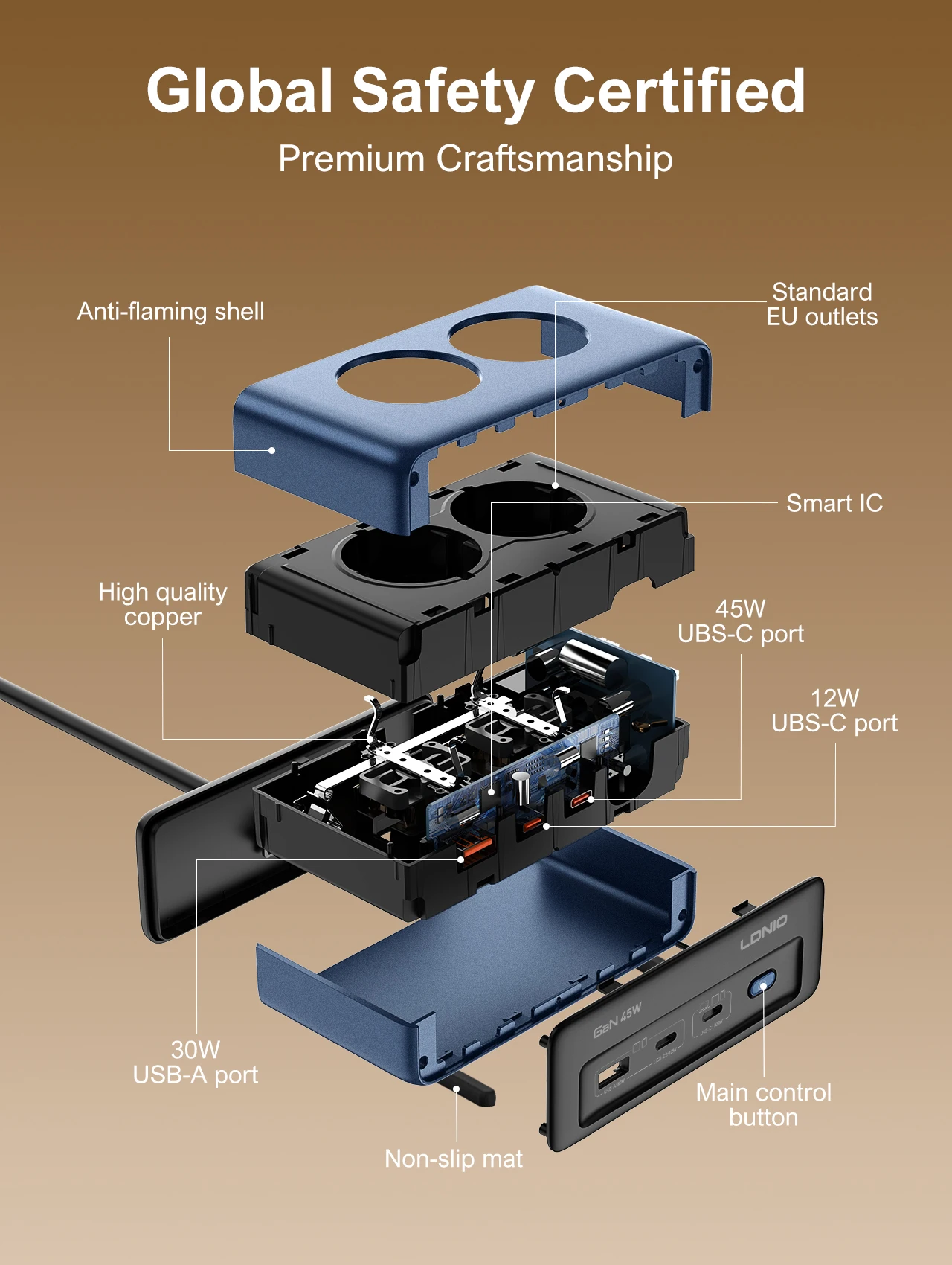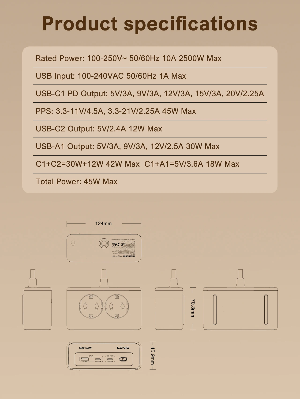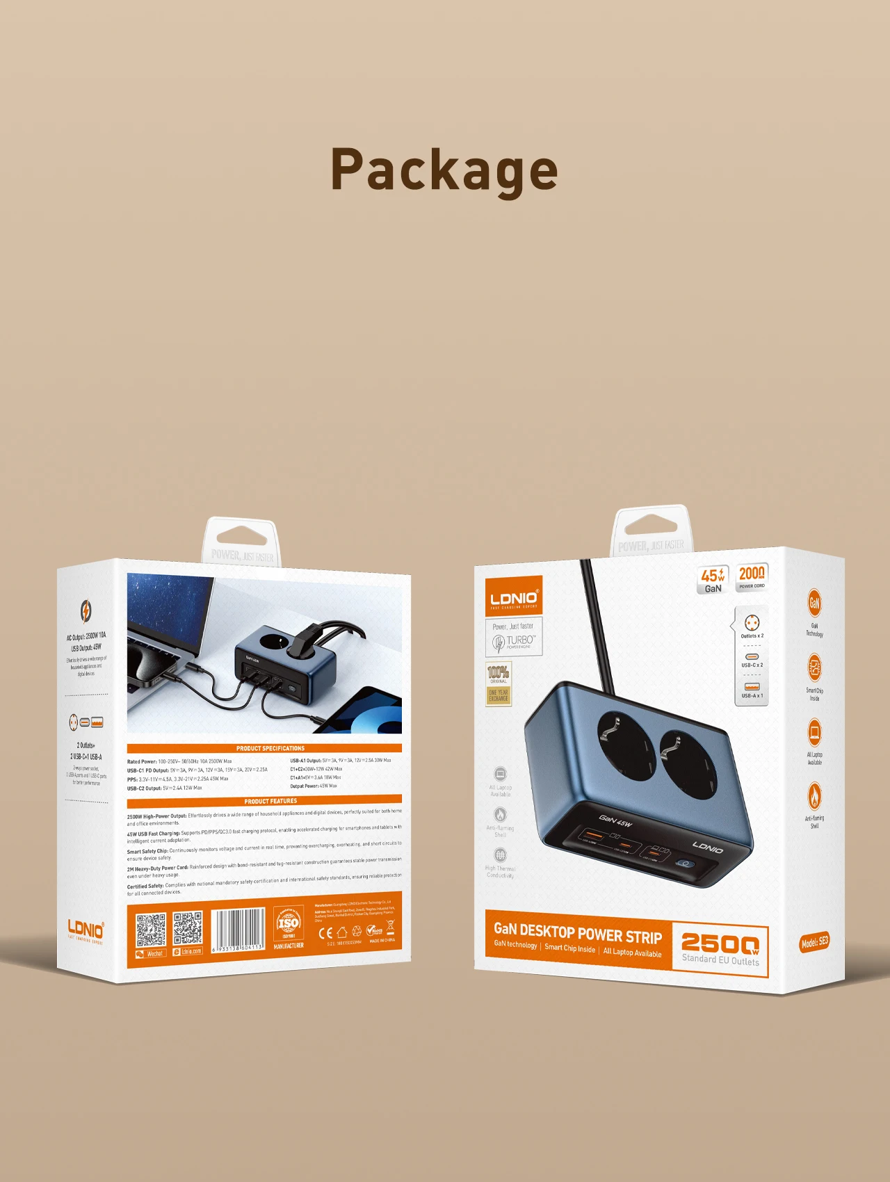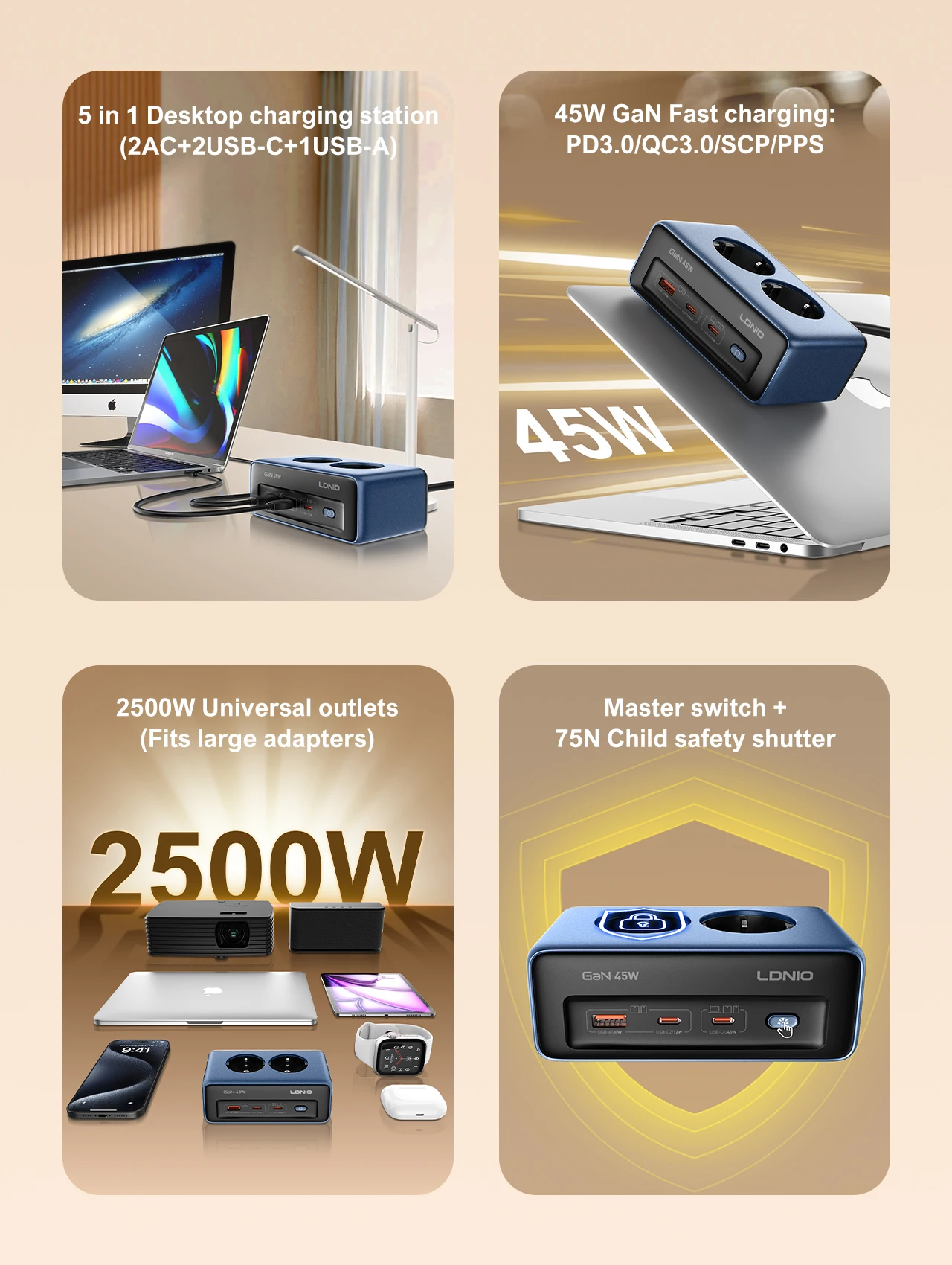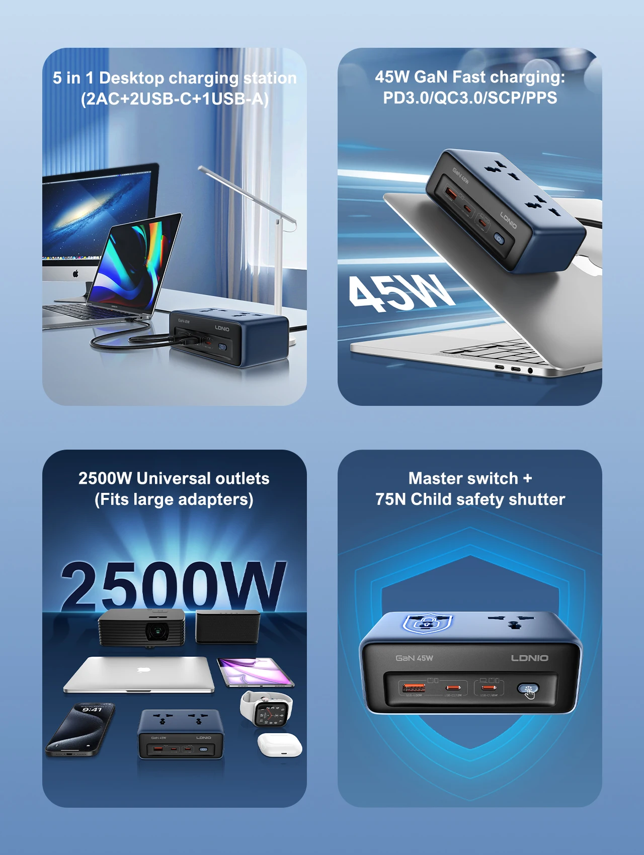 LDNIO Fast Charger Cube Power Strip 2M Electric Extension Power Cord 45W Type C Charging Station Us UK Eu Kr Usb Plug Adapter