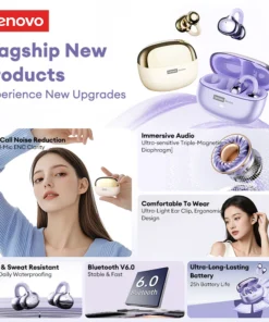 – The Lenovo LE302 Wireless Bluetooth 6.0 Headset features long battery life and a sports ear clip design.