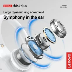 – Lenovo LP75 Ear Hook Sports Wireless Headphones featuring Bluetooth 5.3 technology and a built-in microphone.