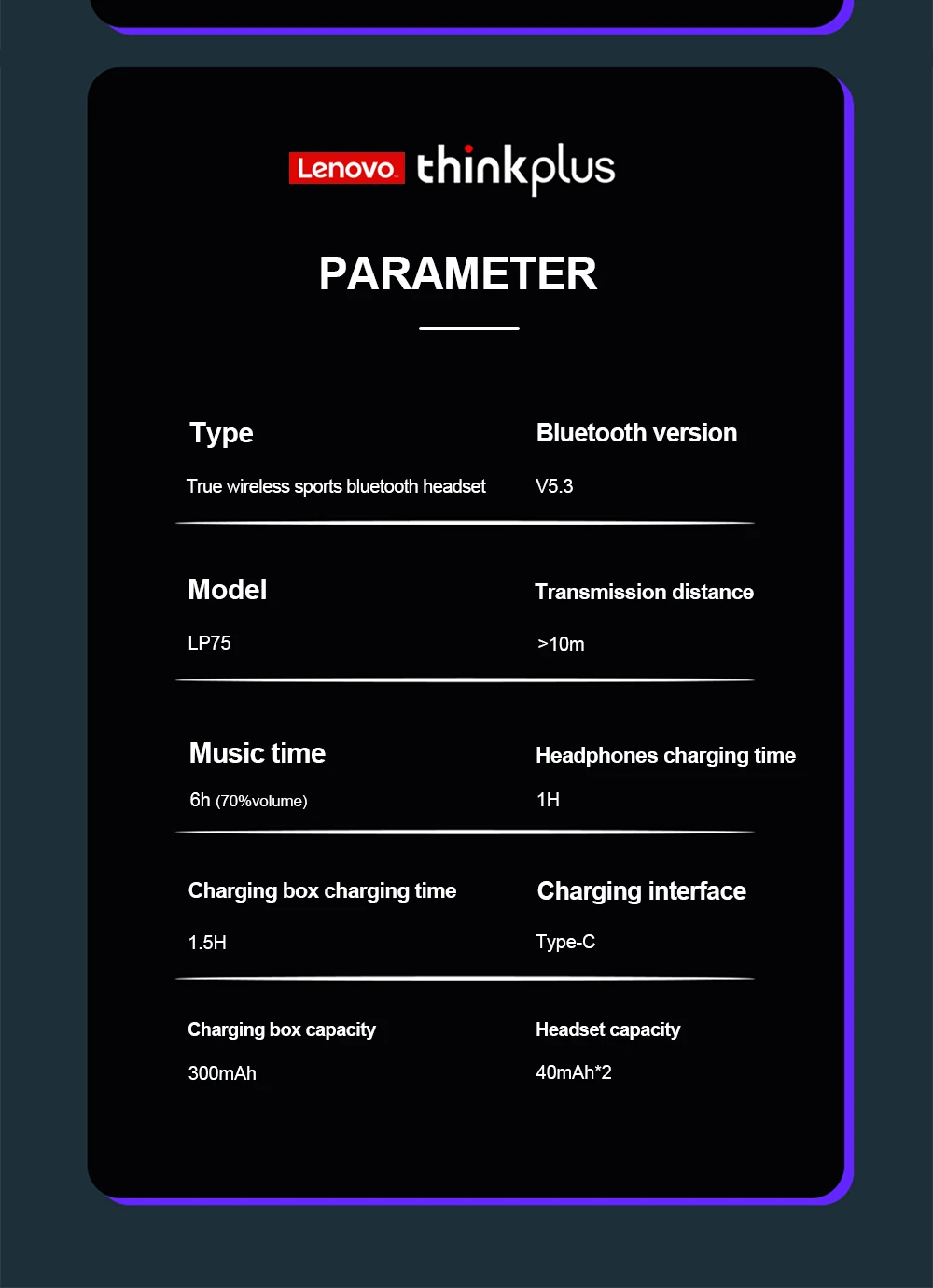 • Hifi Stereo Sound :Enjoy high-fidelity stereo sound with these Lenovo LP75 headphones, delivering rich, clear, and immersive audio.