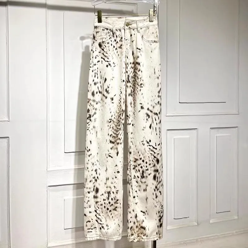 Leopard Print High Waisted Wide Leg Jeans for Women