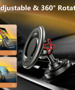– This magnetic phone holder securely attaches to your vehicle’s dashboard or windshield to keep your phone in place while driving.