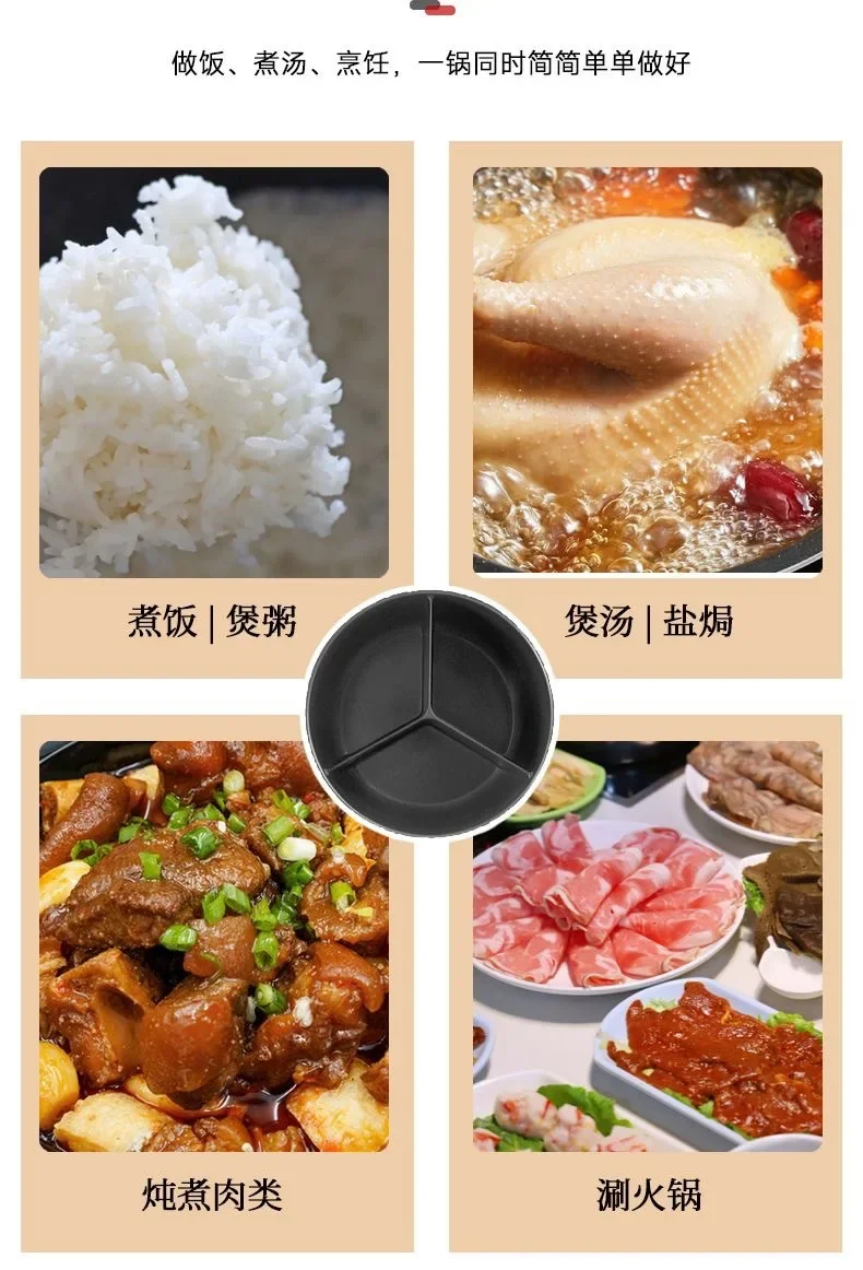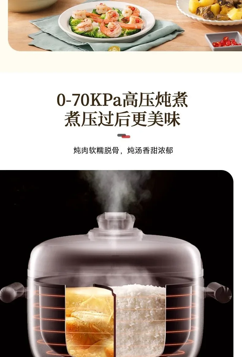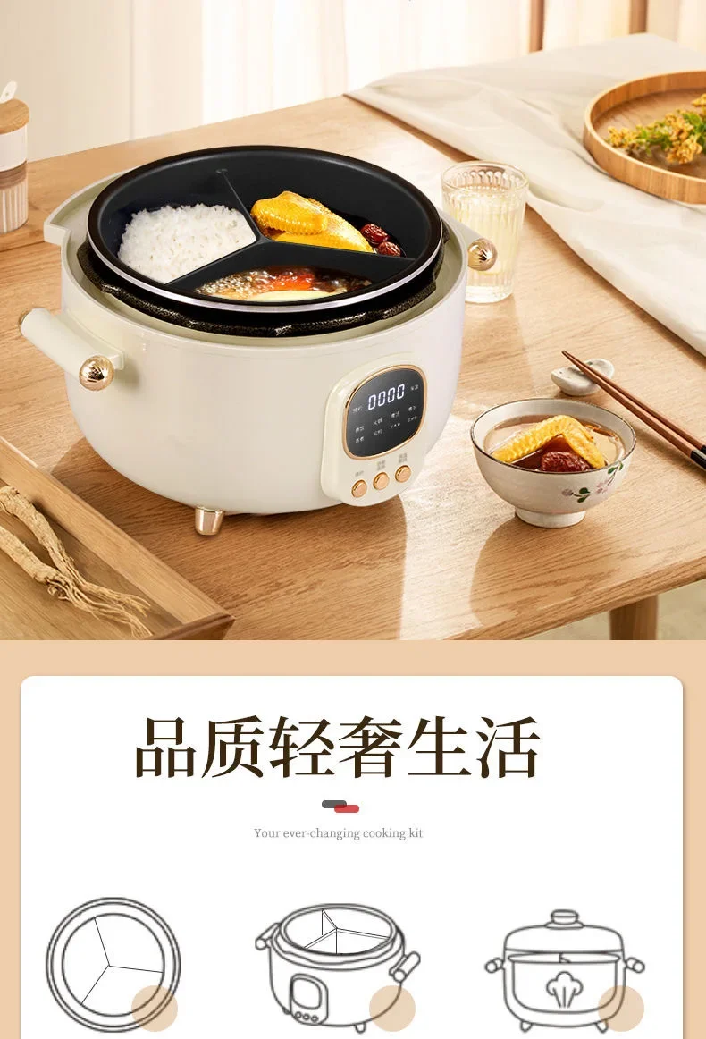 Mandarin Duck Electric Pressure Cooker with Three-Grid Inner Tank, Rice and Stew Functionality