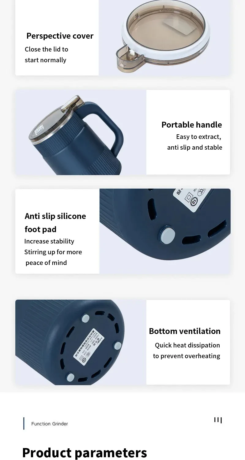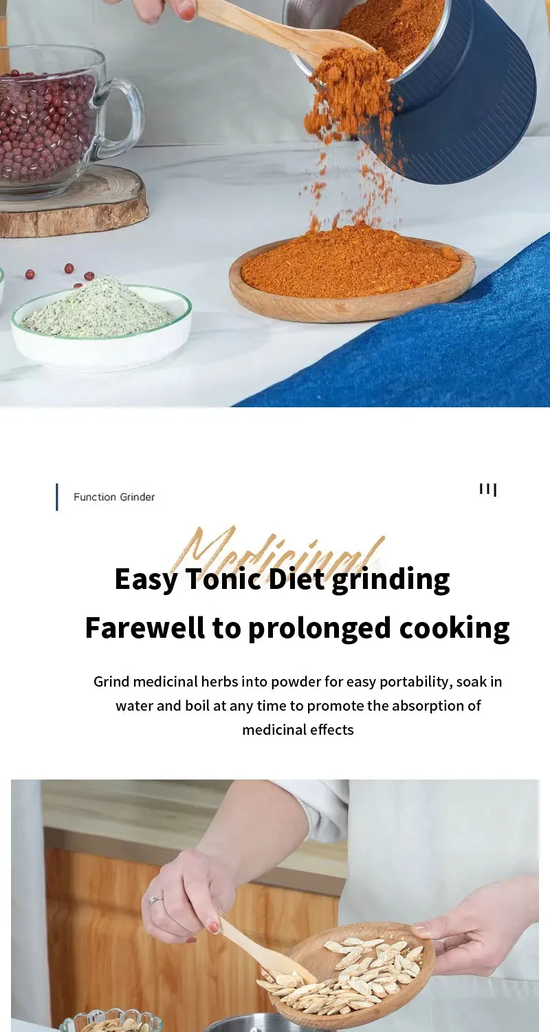 2. Multi functional: suitable for grinding grains, coffee beans, medicinal herbs, seasoning materials, etc.