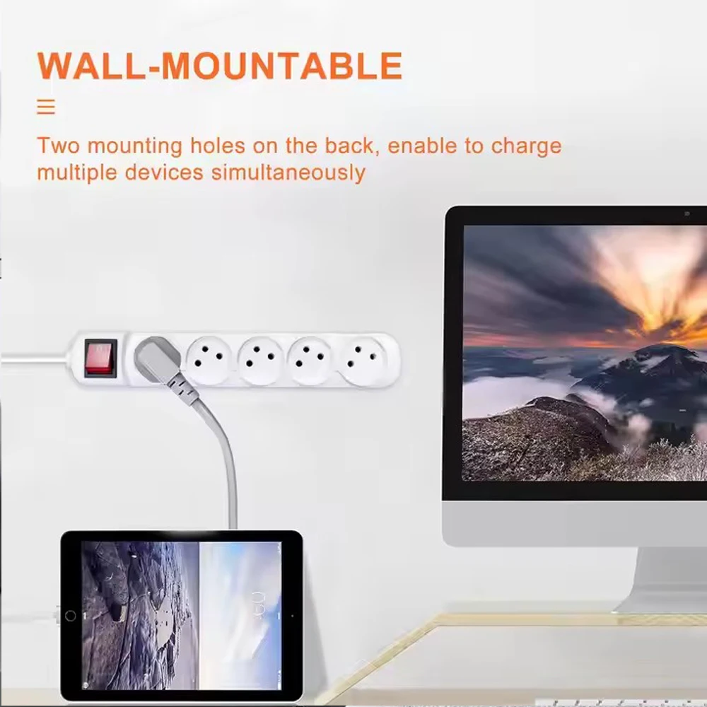 Melery Power Strip Israel Plug Outlets 3/4/5 Way AC Electric Sockets 16A Wire 1m Extension Cord Wall Mounted for Home Office