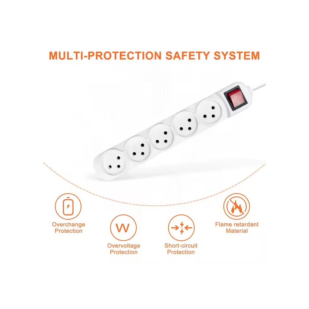 - Overload & Shock Protection: Built-in 16A precision fuse that automatically cuts off power when the load exceeds 2500W, avoiding short circuits. The fully enclosed socket design and insulated cord prevent electric shock, ensuring family safety .