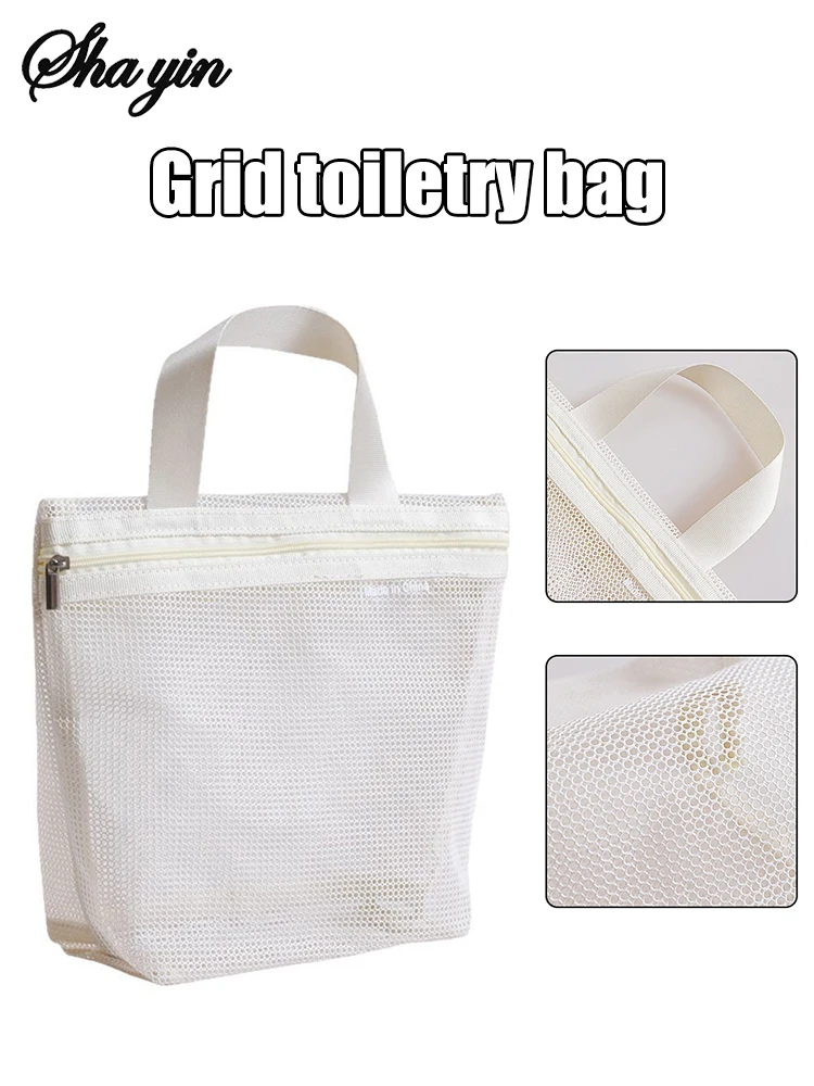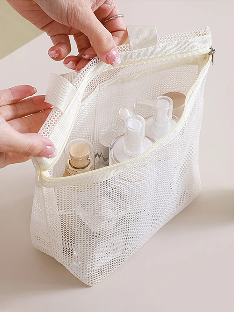 Mesh Makeup Toiletry Storage Bag – Portable Travel Organizer for Cosmetics and Shower Tools