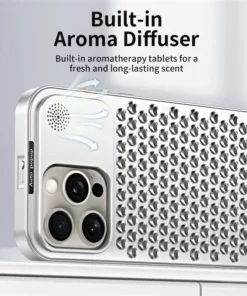 Be the first to review “Metal aluminium Hollow Cooling Phone Case for iPhone 17 14 13 12 16 Pro Max 17promax Aromatherapy Diffuser Detachable Rear Cover”
