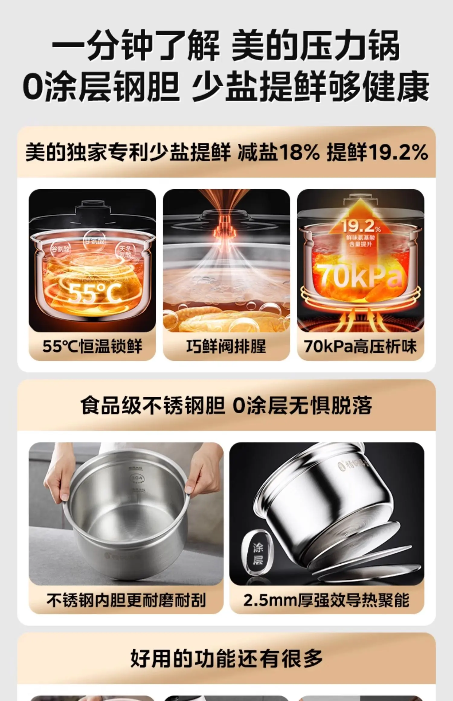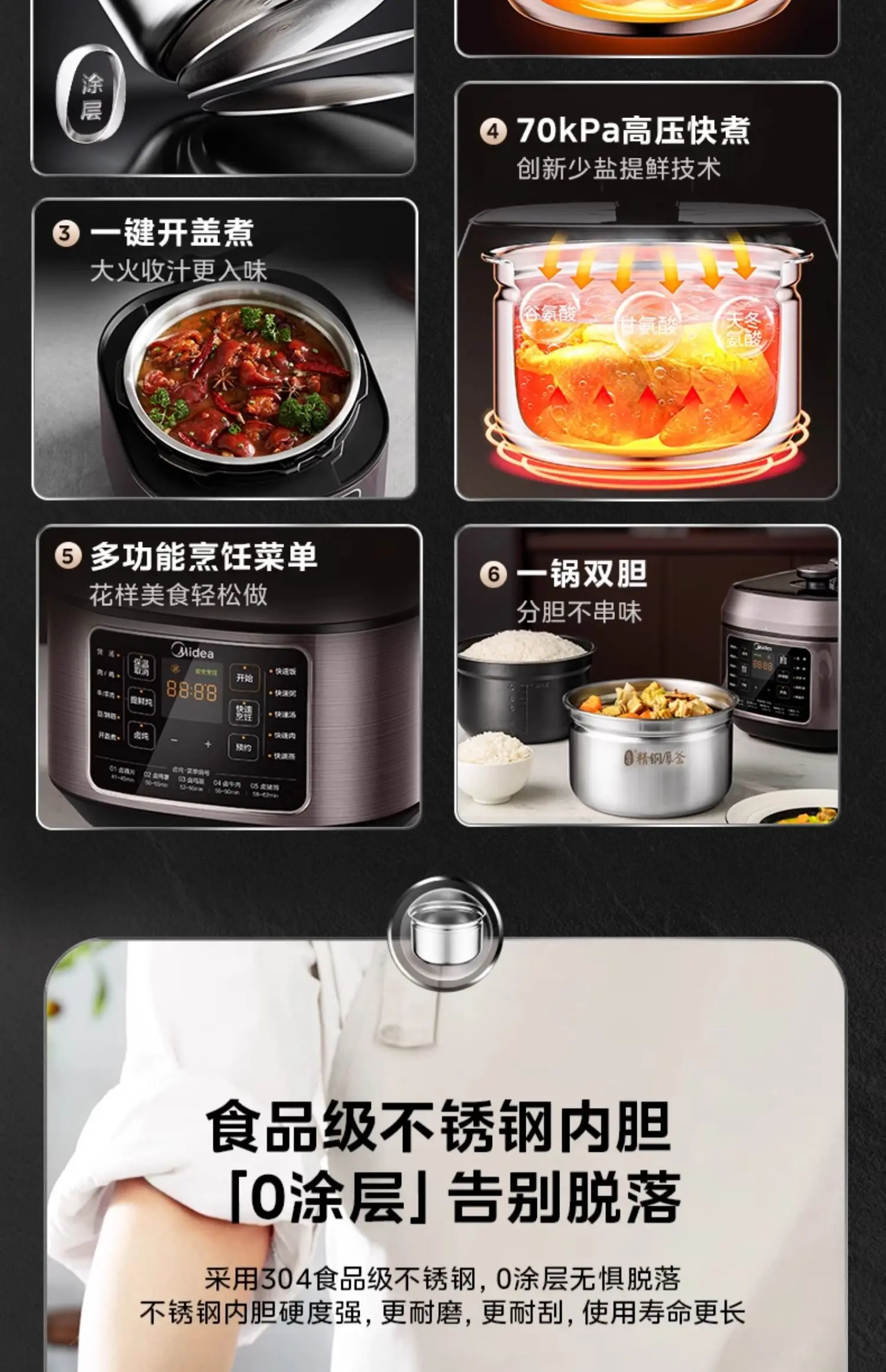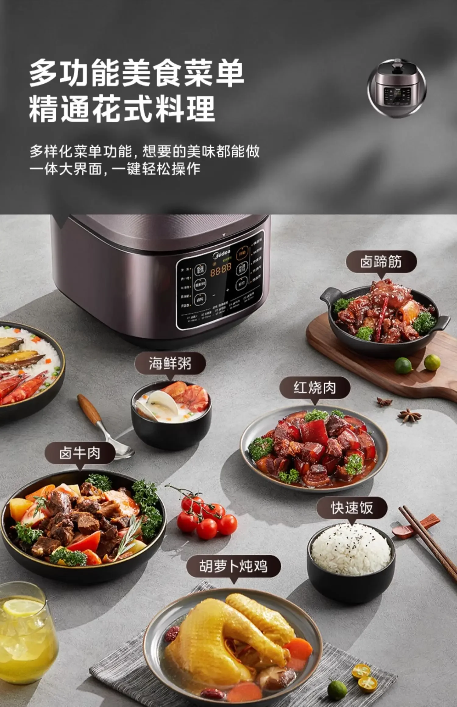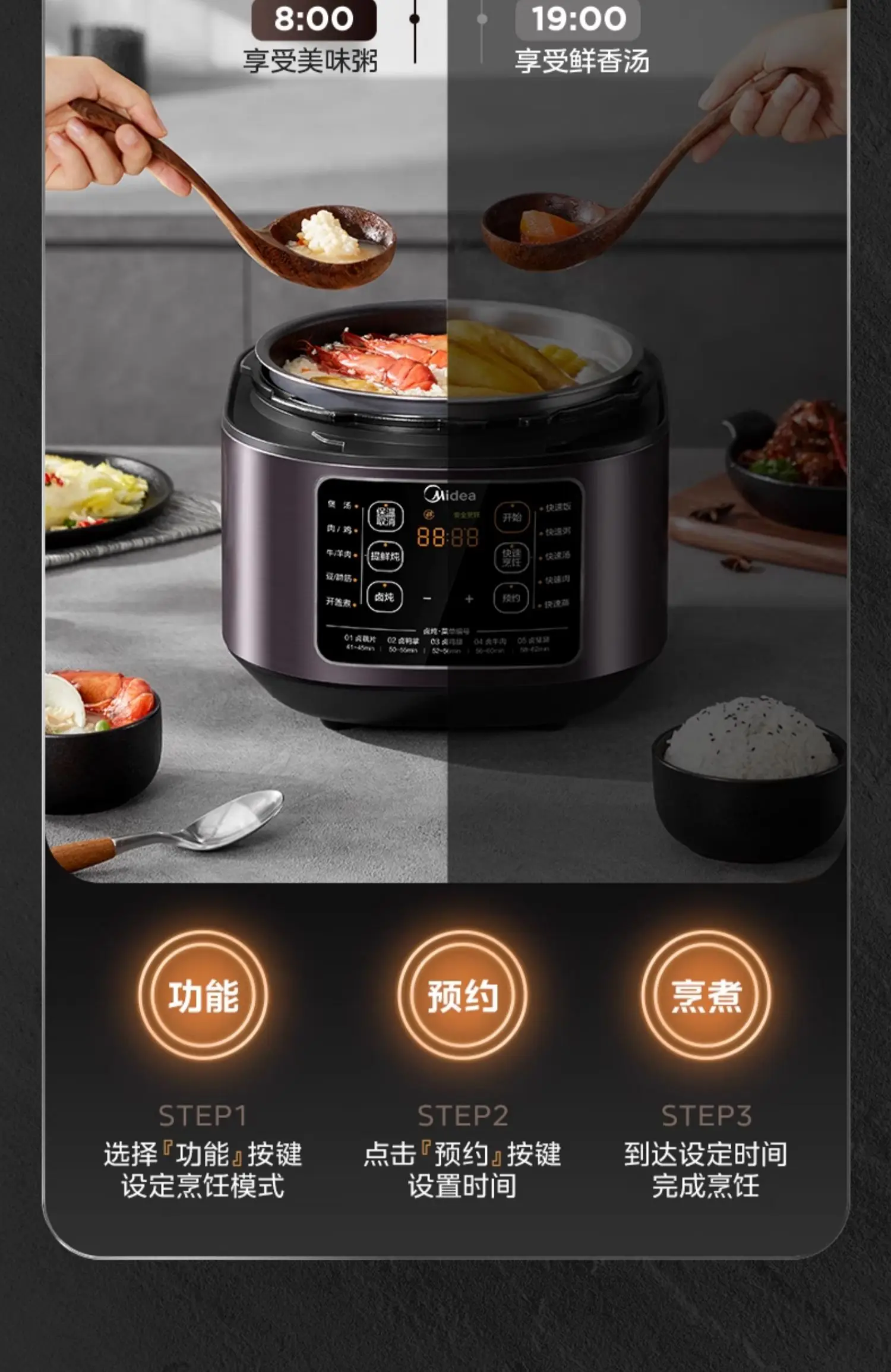 Midea 5L Stainless Steel Electric Pressure Cooker with Multi-Function Rice Cooking and Intelligent Reservation