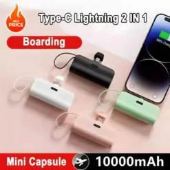 – Mini Capsule Power Bank with a capacity of 10000mAh and a built-in Type-C cable.