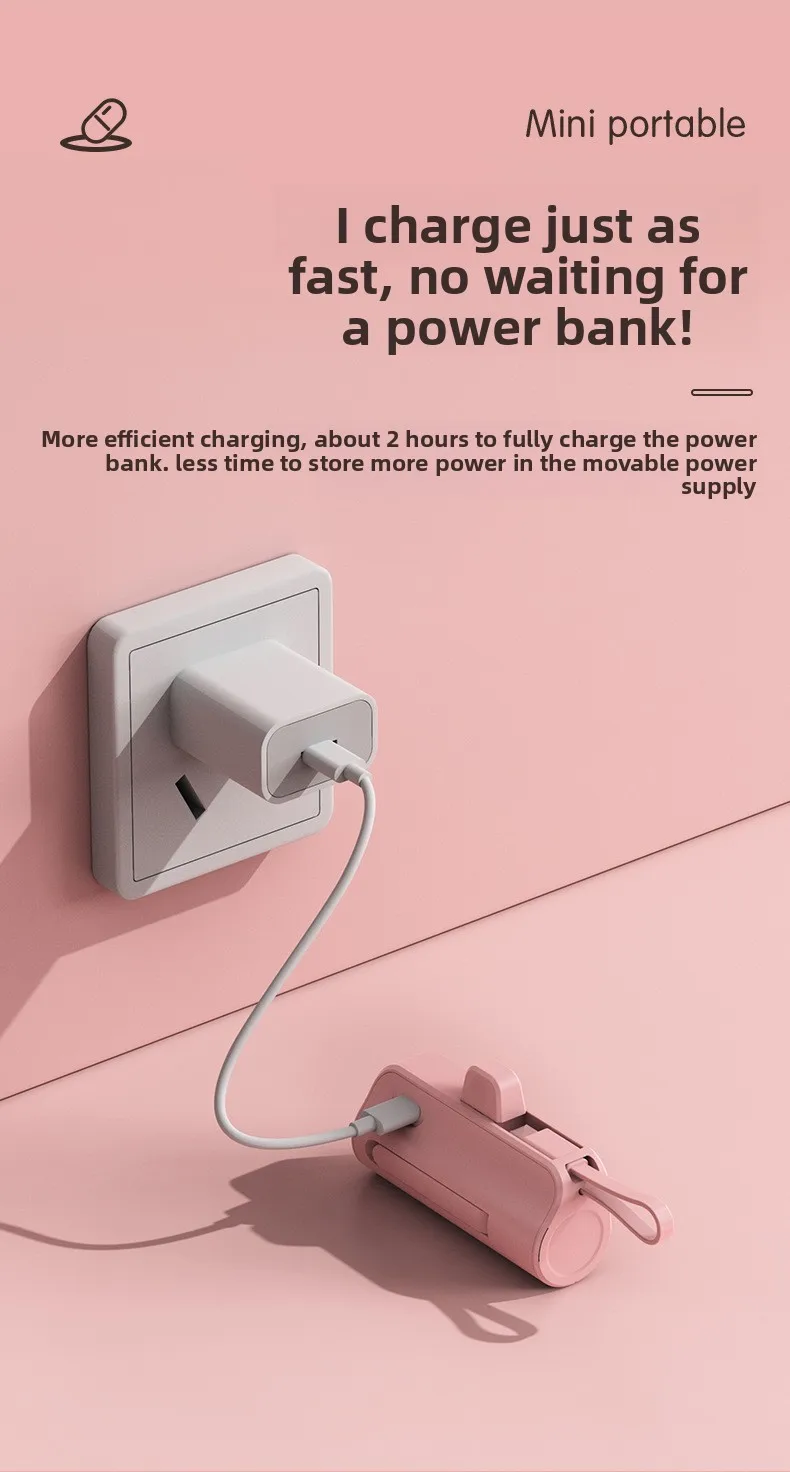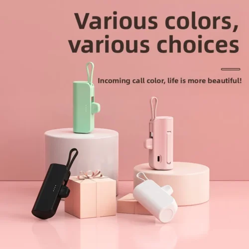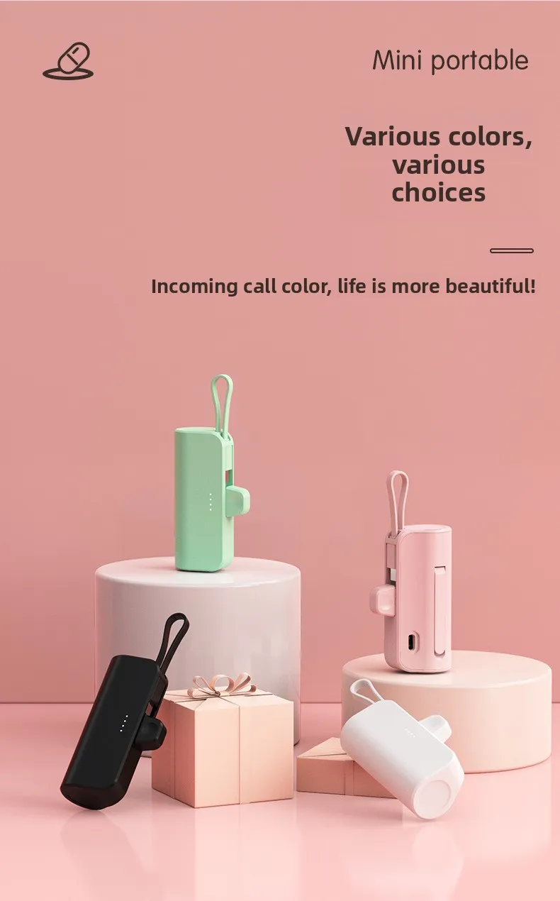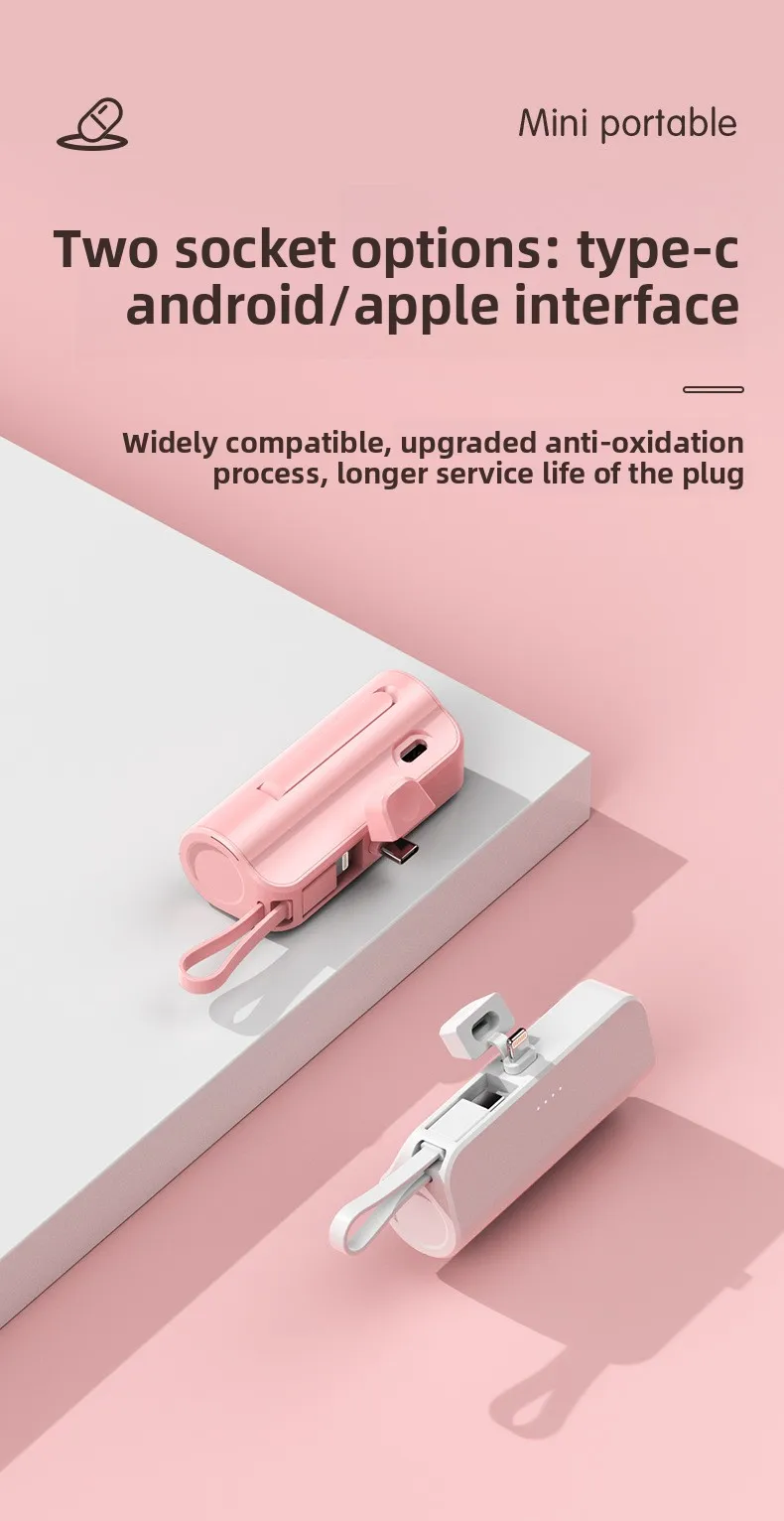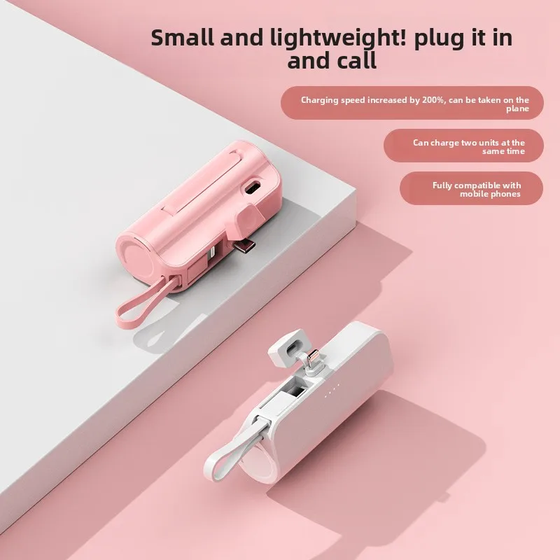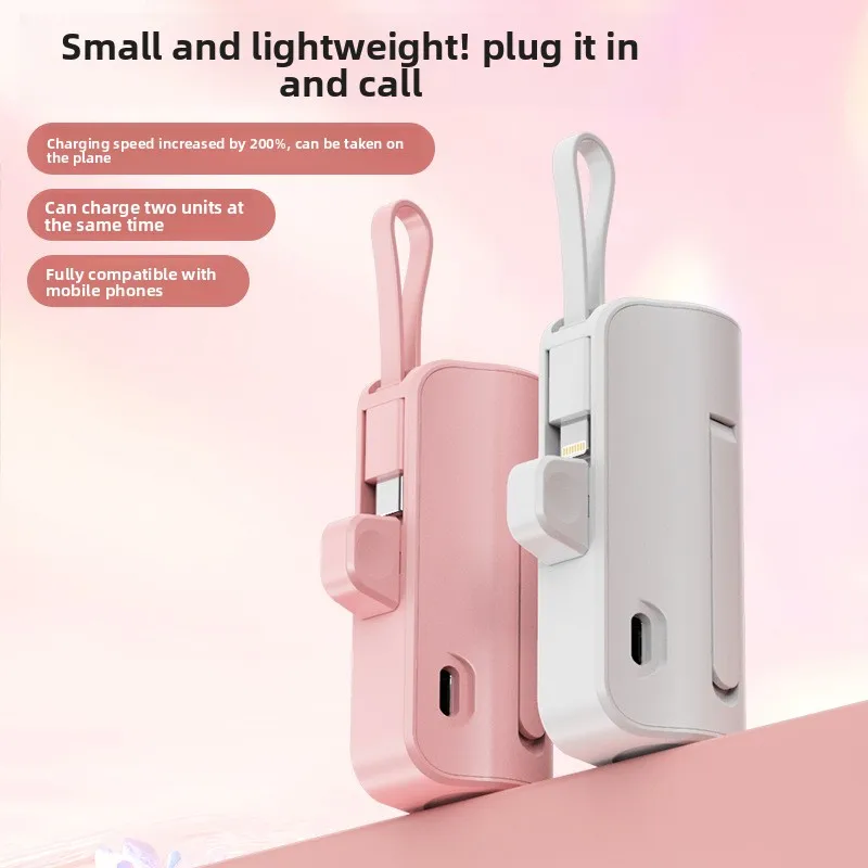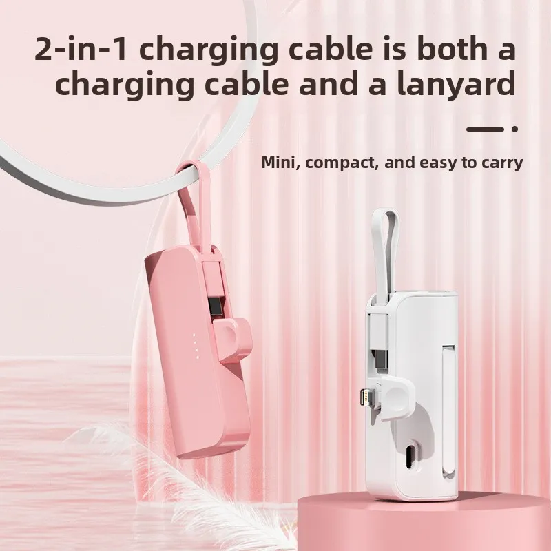 Mini Portable Charger with Built-in Cable and Stand for Android and iPhone