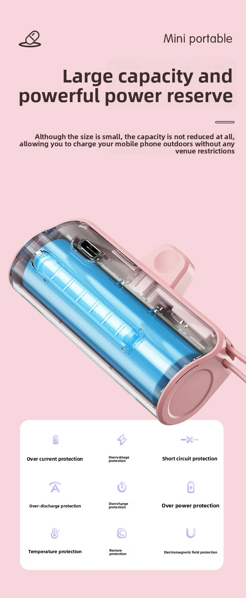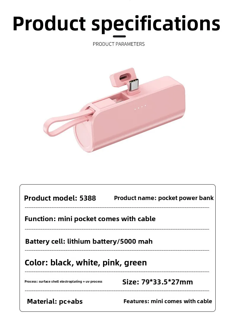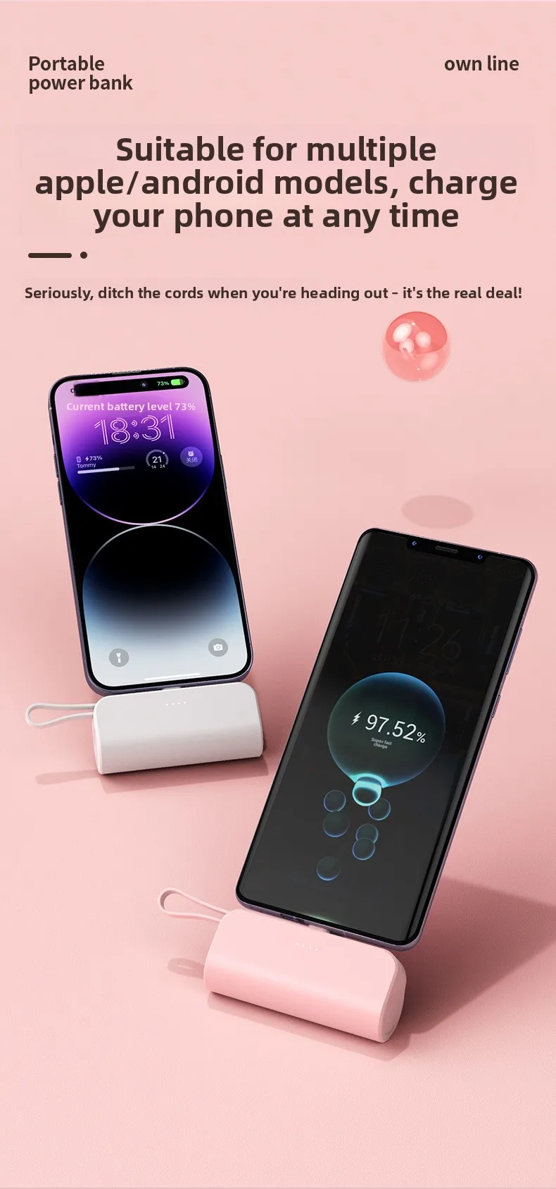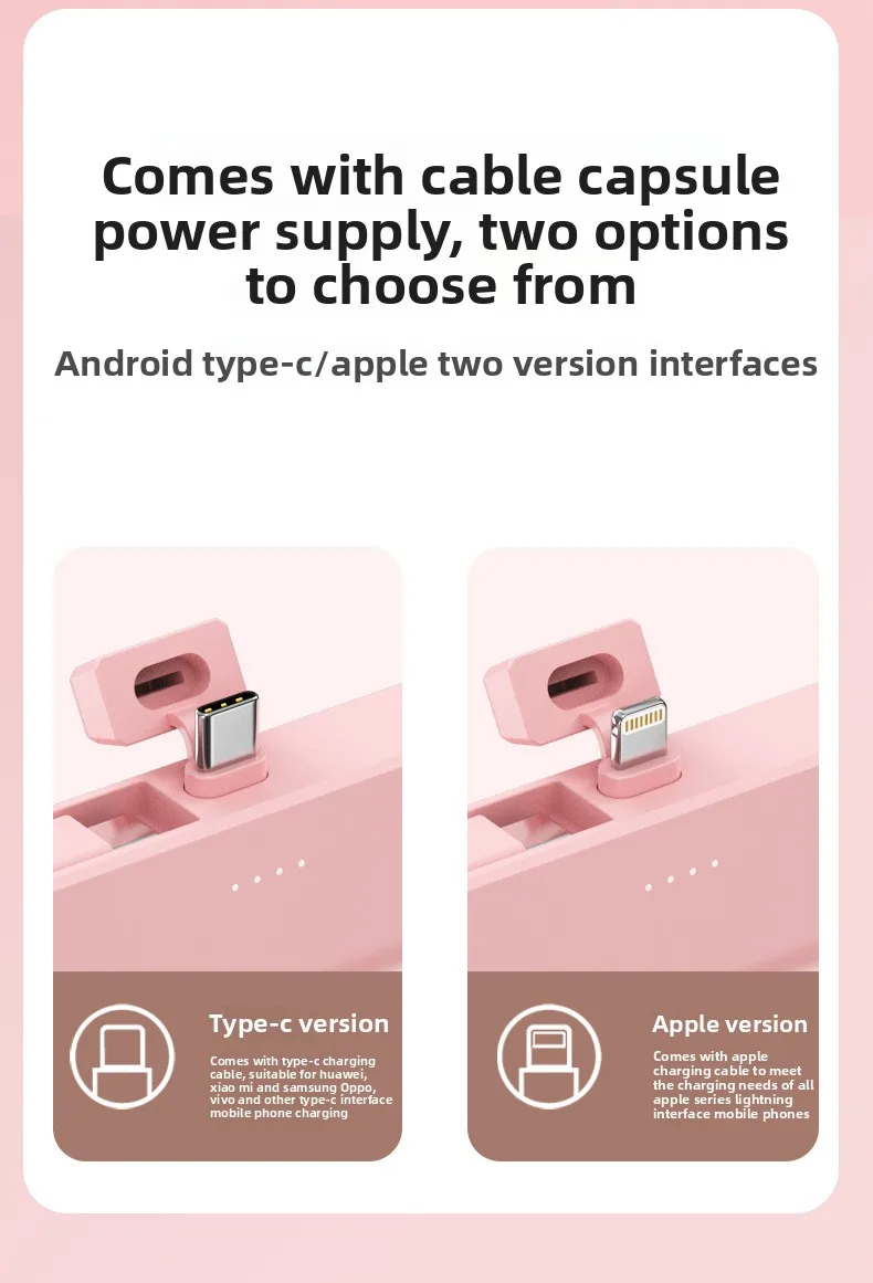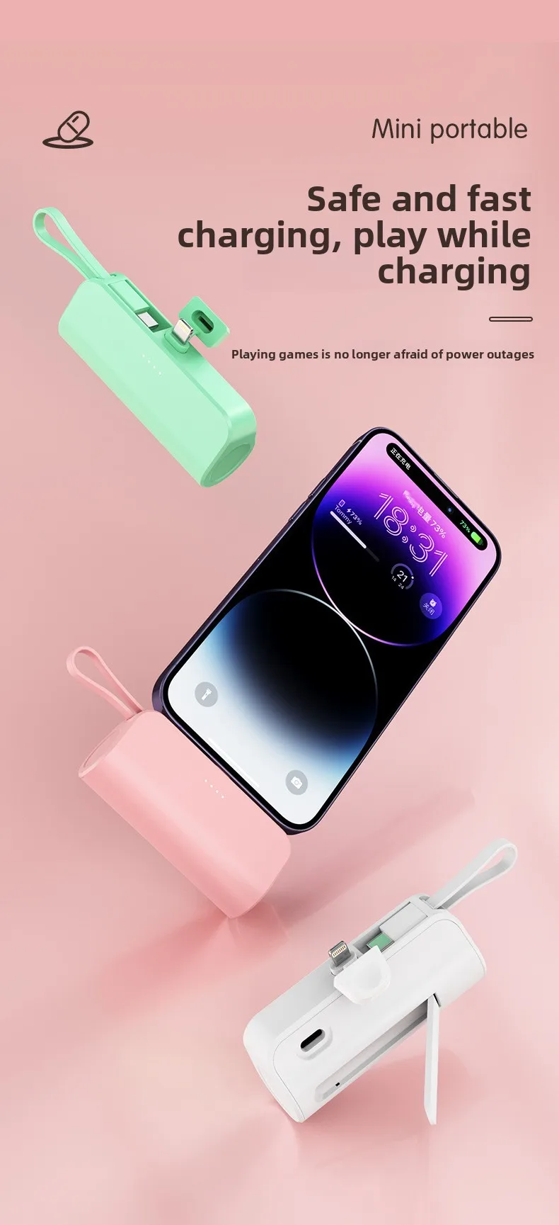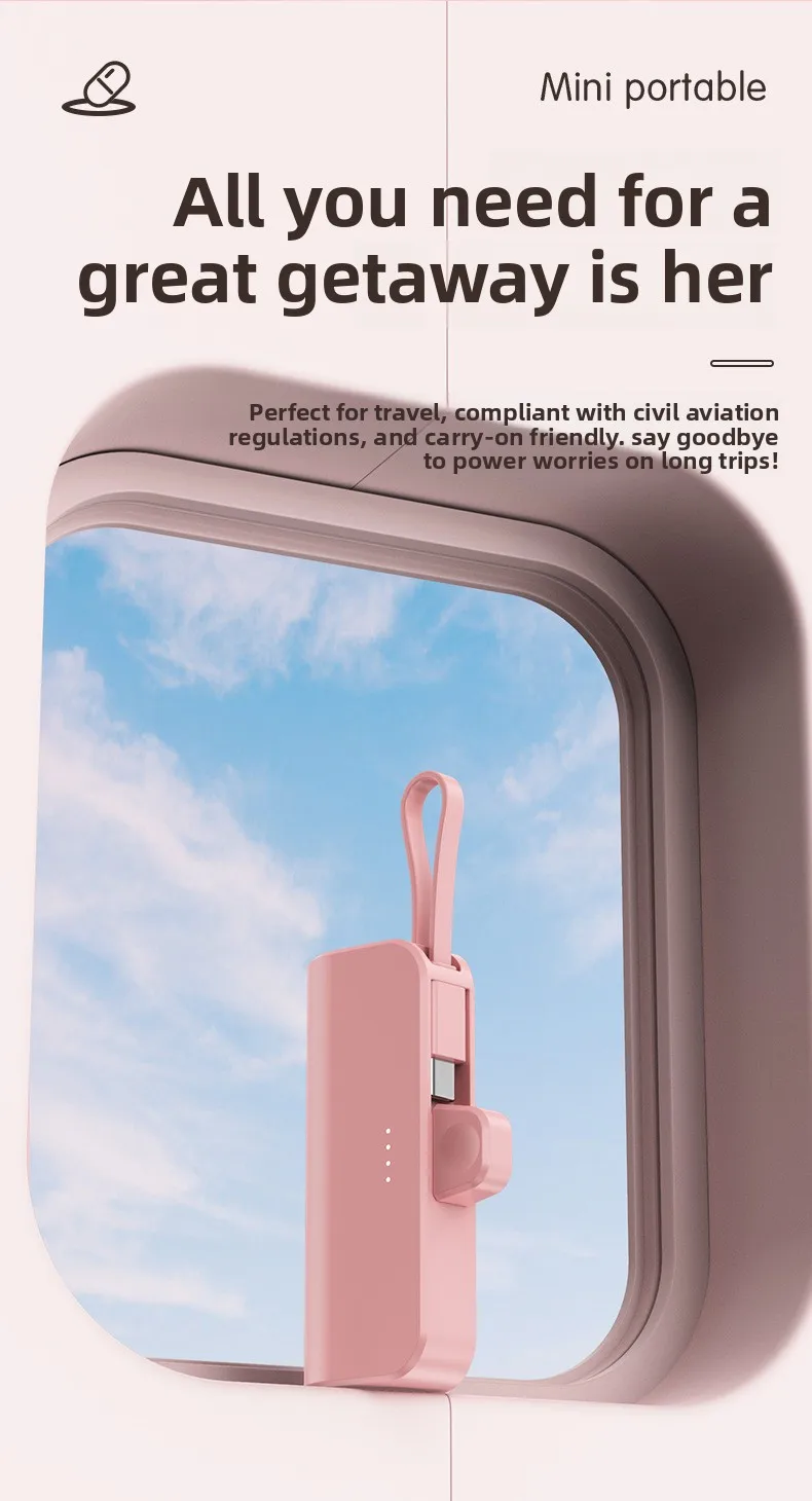 Mini Portable Charger with Built-in Cable and Stand for Android and iPhone