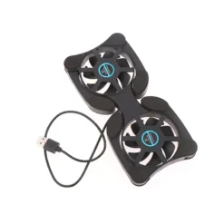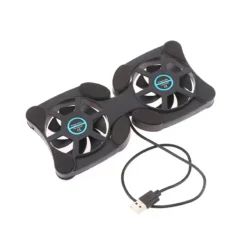 – Compact USB mini laptop fan stand designed for portability and cooling.