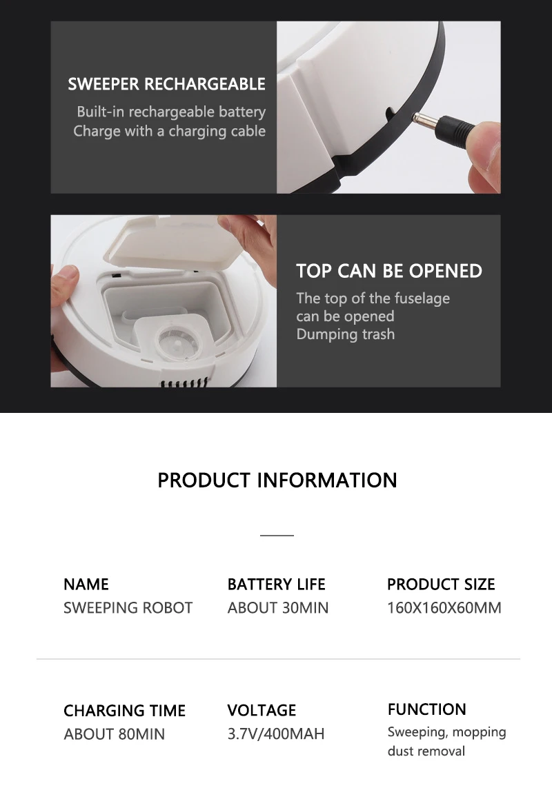 3. 400mAh battery capacity, longer battery life in 30 minutes, the whole house is unobstructed, and there is nowhere to hide dirt.