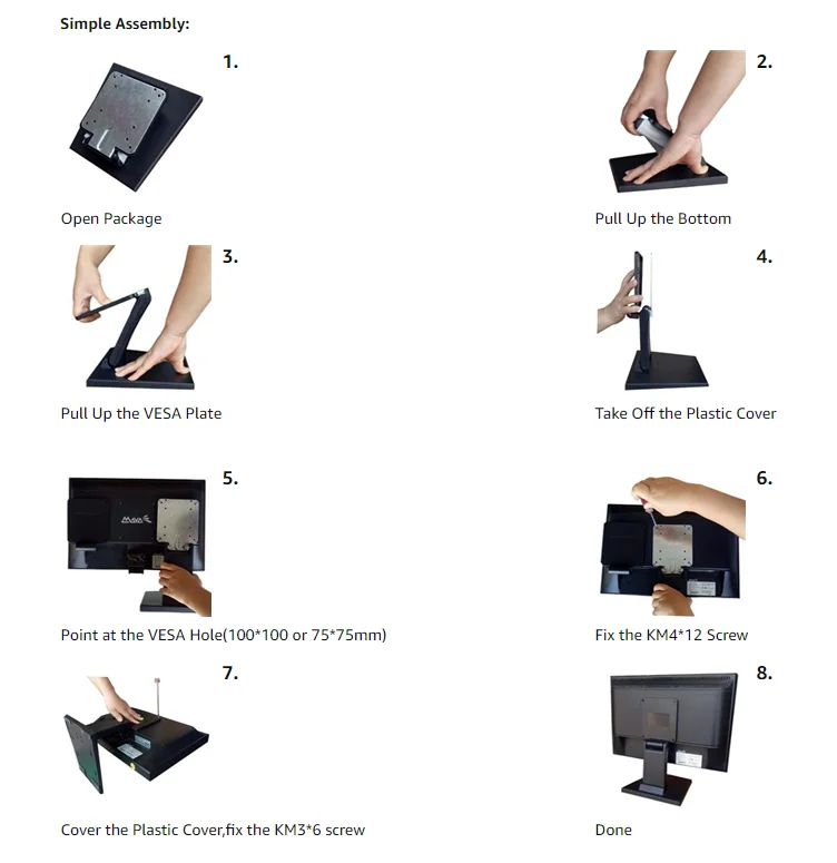 57mm Hole: The monitor needs to have standard of 75*75mm VESA mounting hole size.