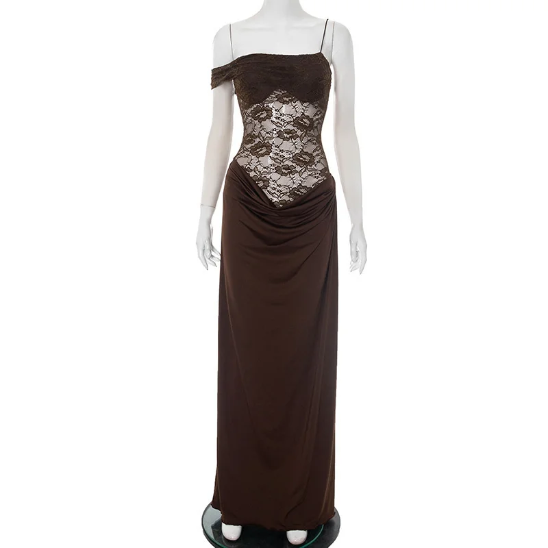 Mozision One Shoulder Lace Maxi Dress – Women’s Backless Evening Gown