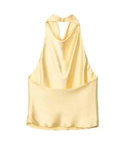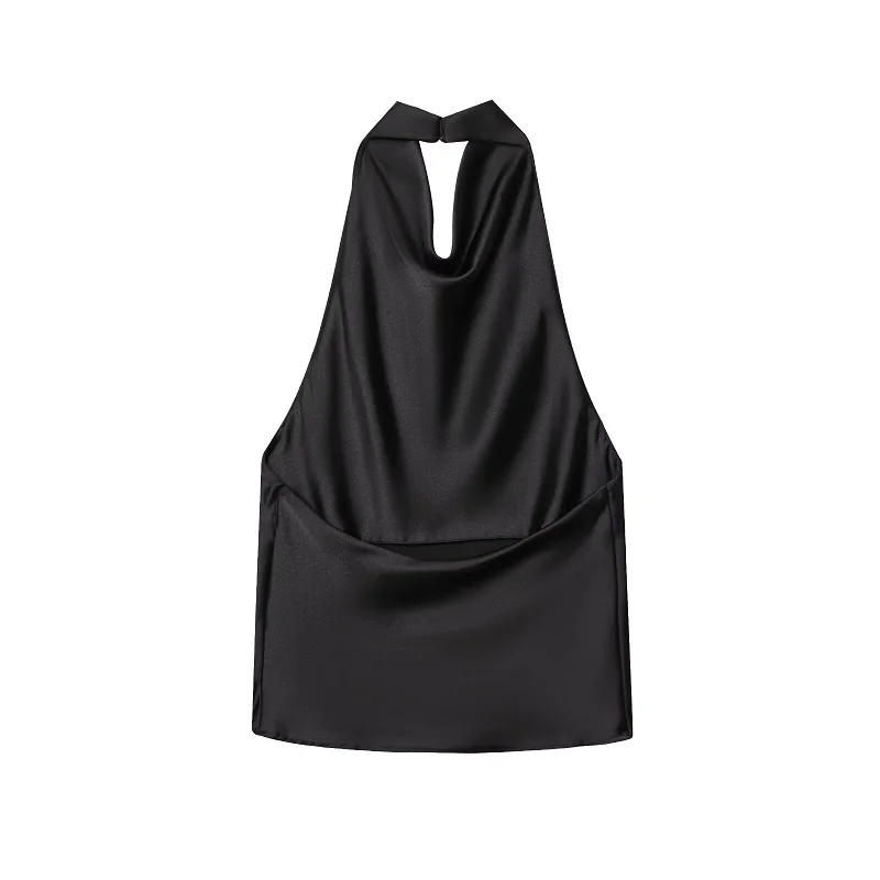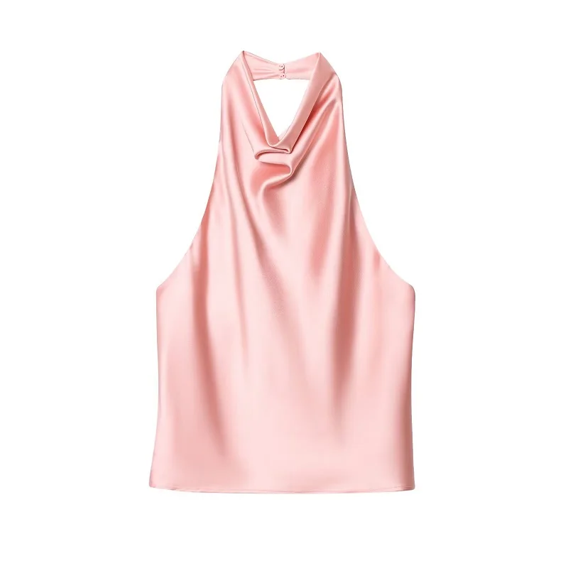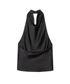 Halter Top with Satin Backless Design for Women – Black and Pink Summer Beach Camisole