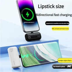 – Portable charger with a 5000 mAh capacity designed for charging devices on the go.