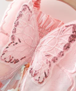 Baby Girls Evening Dress with Detachable Butterfly Wings in Colorful Design