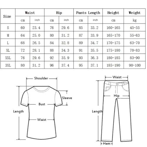 3XL =Waist 80cm ,Pants Length 95cm ,For Weight 90-100kg Height 185-190cm;