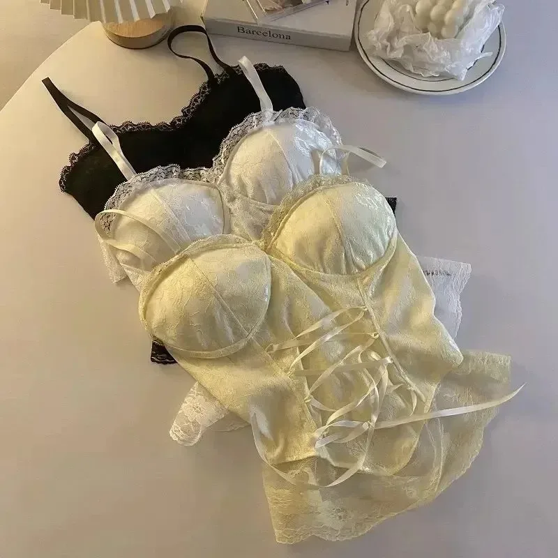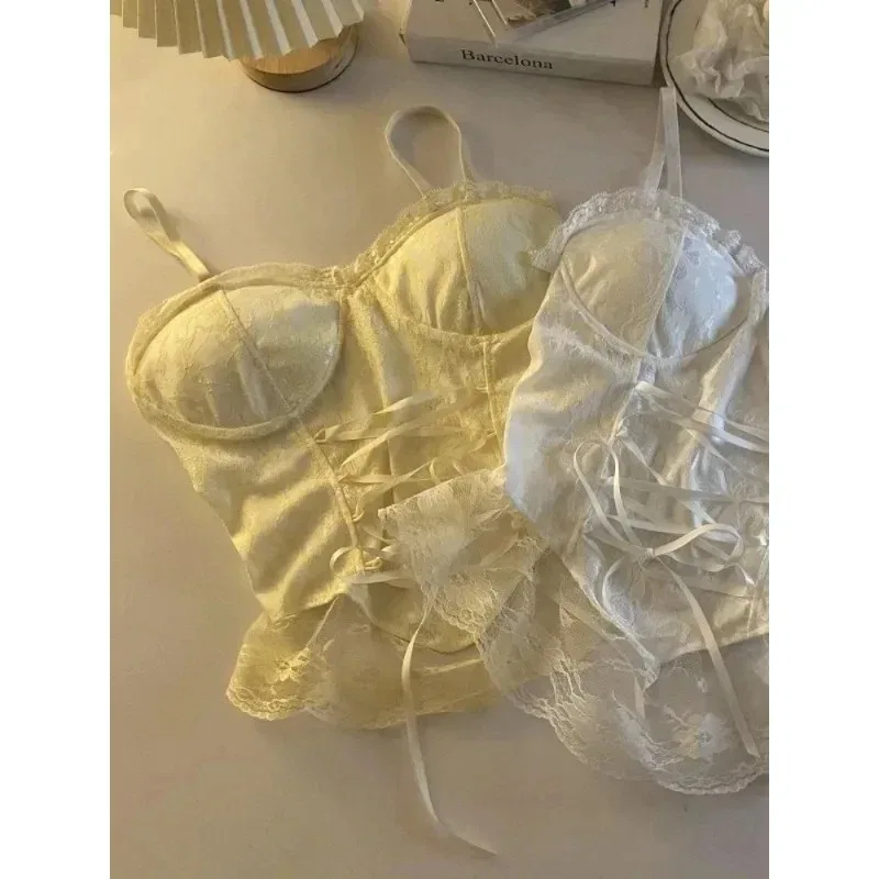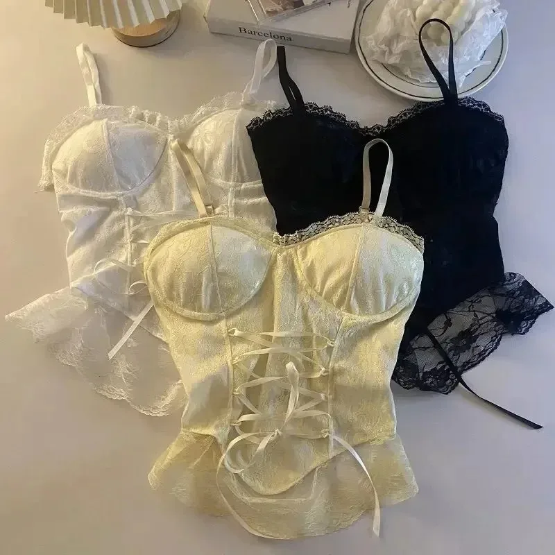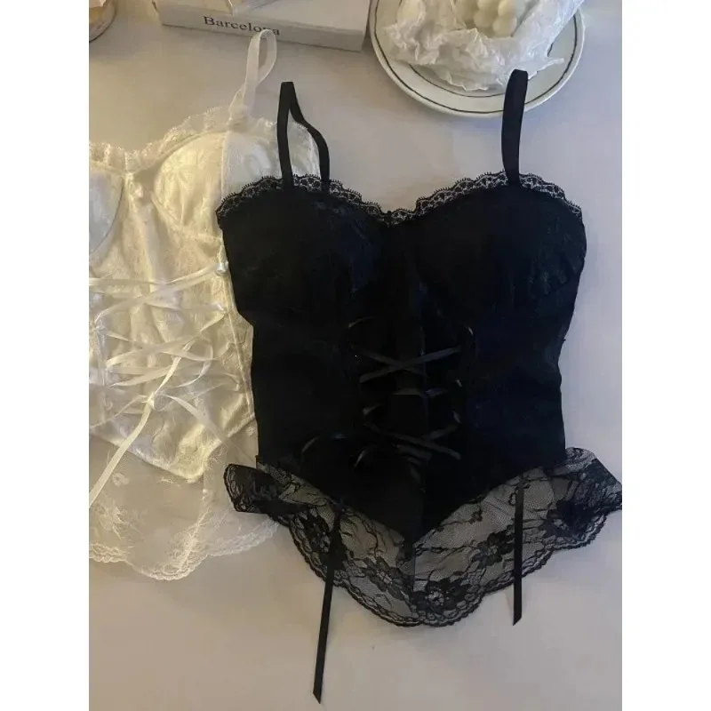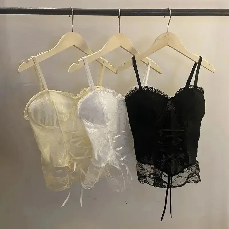New Y2k Clothes Sexy Crop Tops Women Corset Lace Bandage T-shirt Camisole Woman Sling Tank Top Fashion Sleeveless Waistcoat Gift