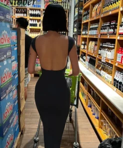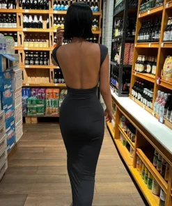 Backless Maxi Dress with Slim Fit and Short Sleeves for Women