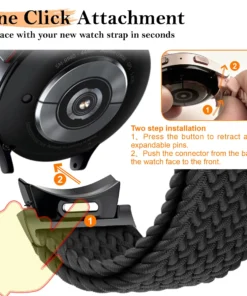 – Magnetic braided band compatible with Samsung Galaxy Watch 4, 5, and 6 in various sizes.