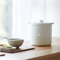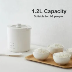 – Electric rice cooker with a 1.2L capacity and ceramic glaze liner.