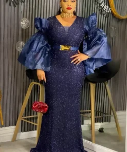 Plus Size Maxi Dress – Elegant Sequin Dashiki Gown for Weddings
