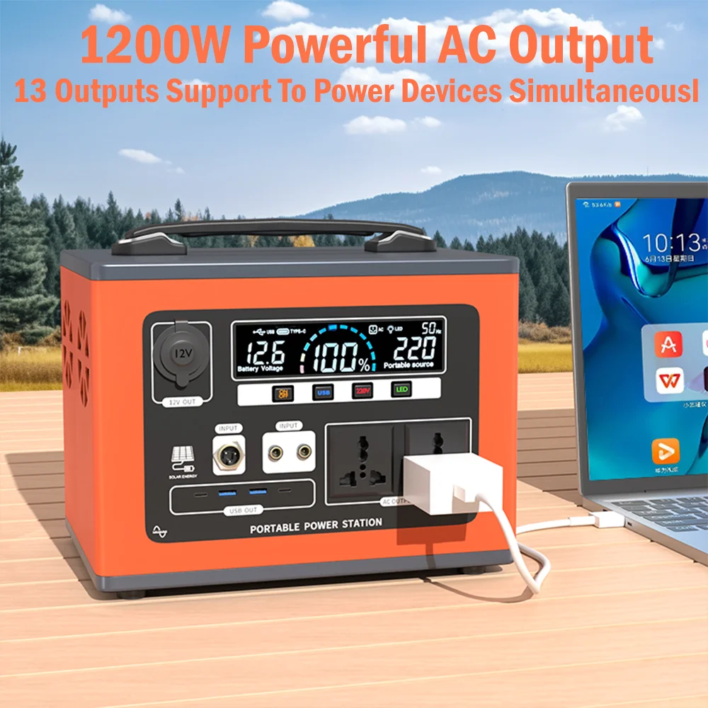 Portable 220V Power Station – 1200W Large Capacity Charging for Camping and Outdoor Use