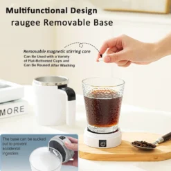 – Portable electric mixing cup designed for self-stirring beverages.