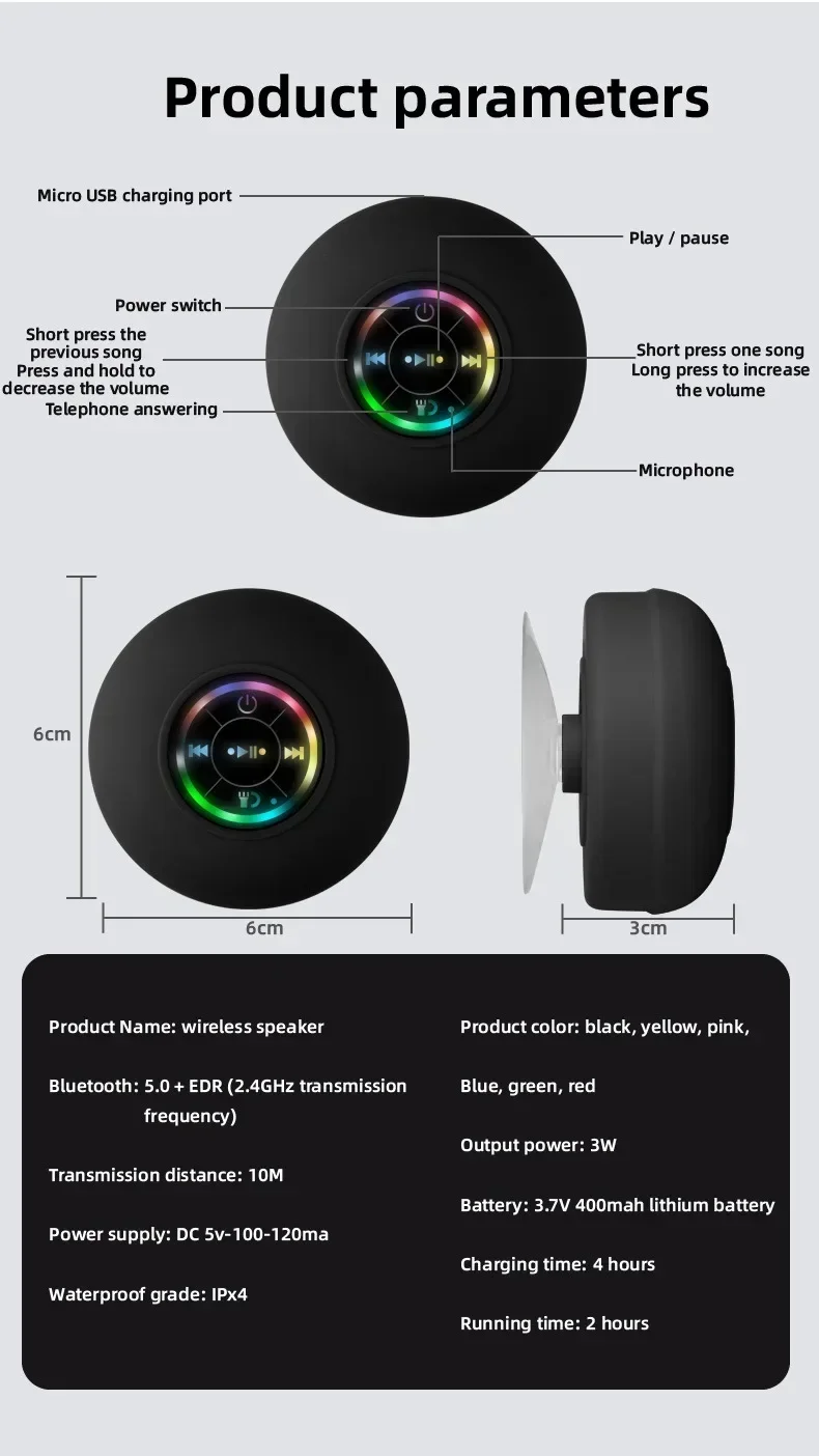 Portable Waterproof Bluetooth Speaker with Suction Cup – Outdoor Stereo Sound