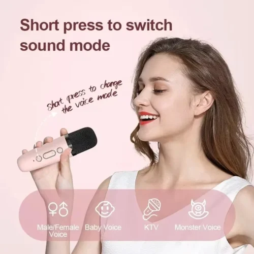 A mini karaoke machine with a stylish appearance and simple operation for both kids and adults to enjoy. Bluetooth speaker is equipped with a high-performance audio driver and an advanced digital signal processor, which make the sound clearer and avoids annoying mike feedback.