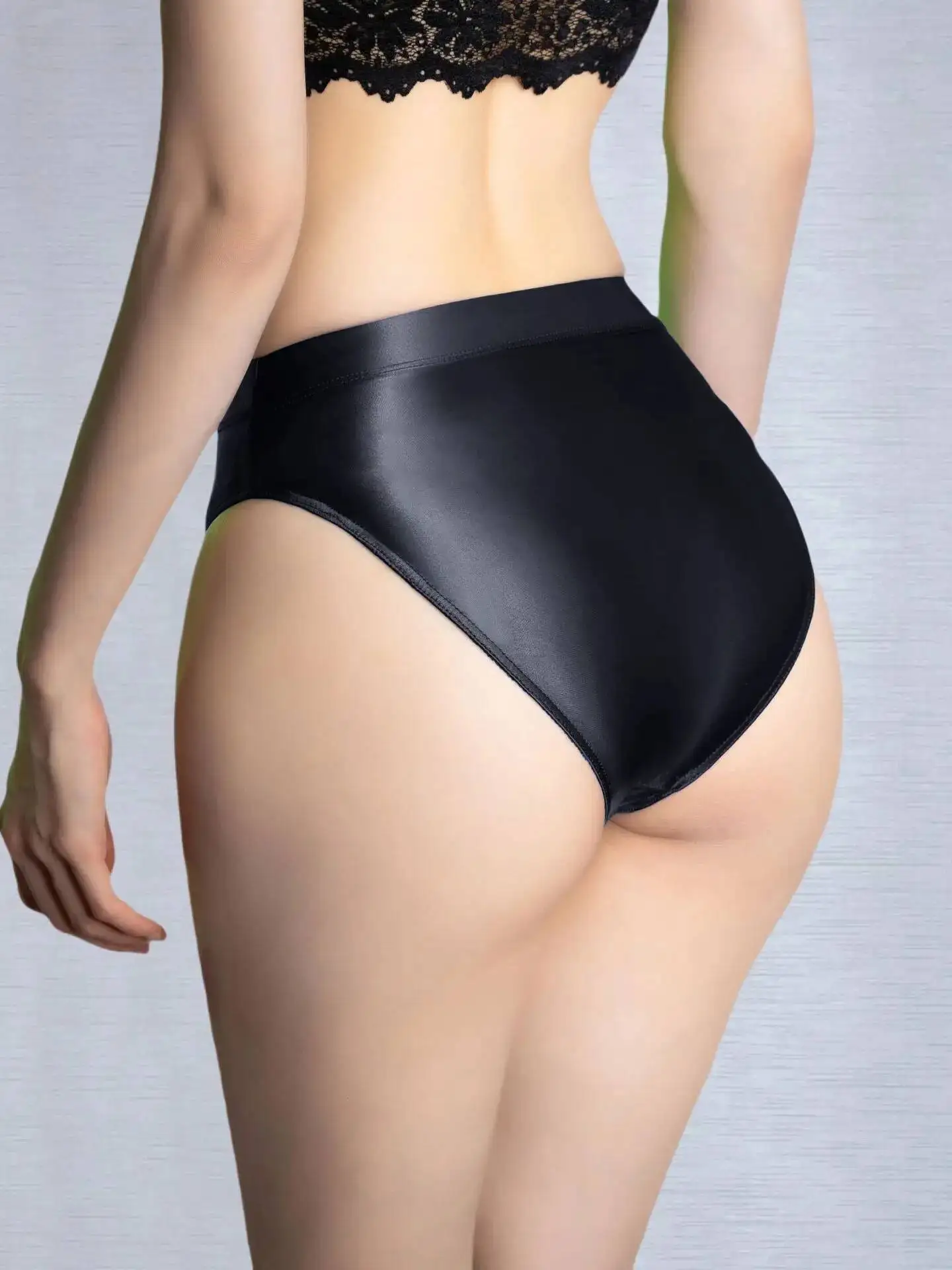 Women’s Stretchy Solid Color Shorts with Transparent Shiny Finish