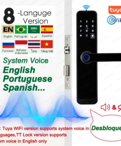 – Tuya WiFi version supports system voice in 8 languages; TT Lock version supports English only.