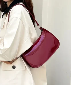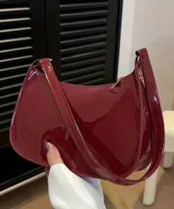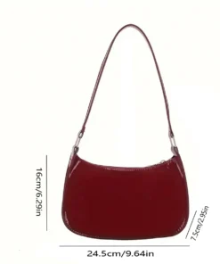 Red Retro Hand-Held Underarm Bag, Small Patent Leather Design for Young Women