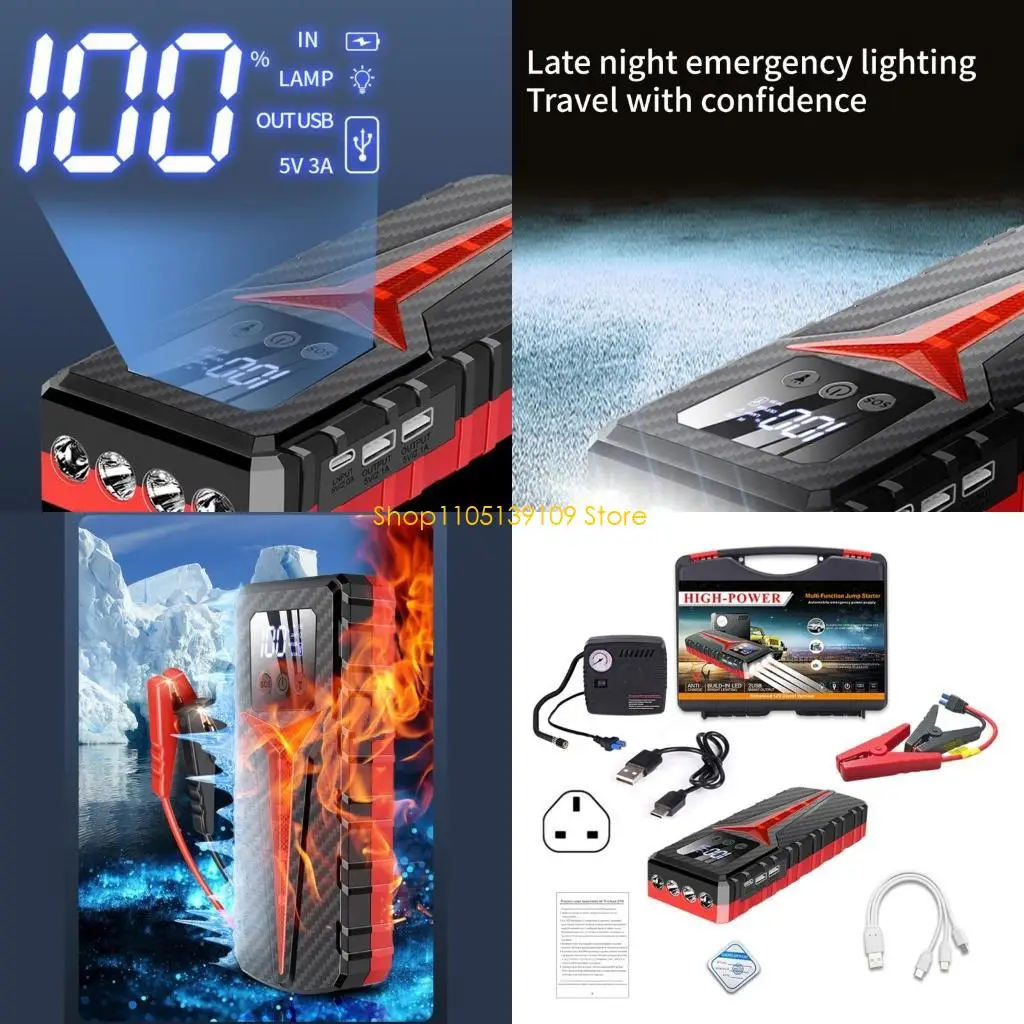This Car Jump Starter features a clear digital screen display for easy monitoring of remaining power. Its waterproof and dustproof design ensures durability and safety.