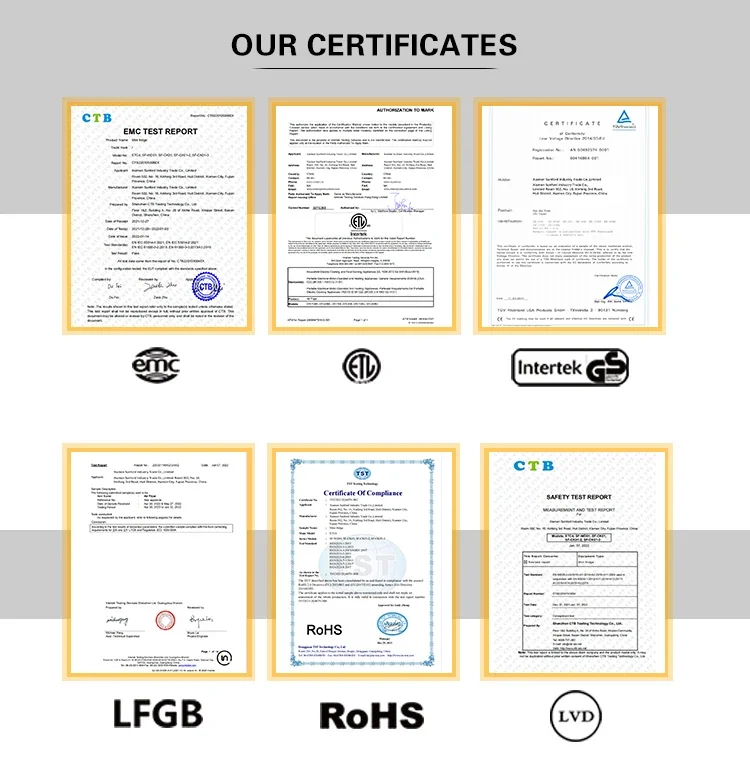 Certificate | LVD, EMC, ROHS, LFGB, CB, ERP | |
