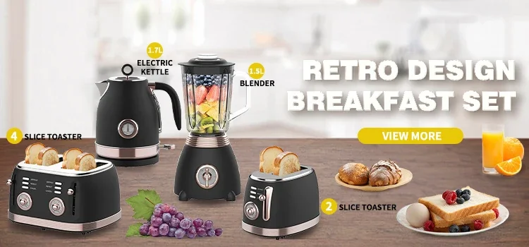 Retro Breakfast Set Appliances 4 Slice Toaster Electric Water Kettle and Toaster Set Juice Blender