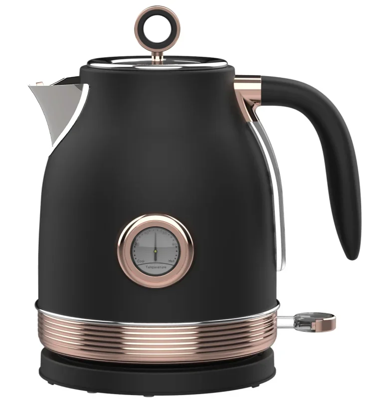 Appearance | #304 Stainless steel body with spray painting Lines design on the bottom With thermometer Pull up lid Transparent water level 360 degree cordless base with cord storage | |